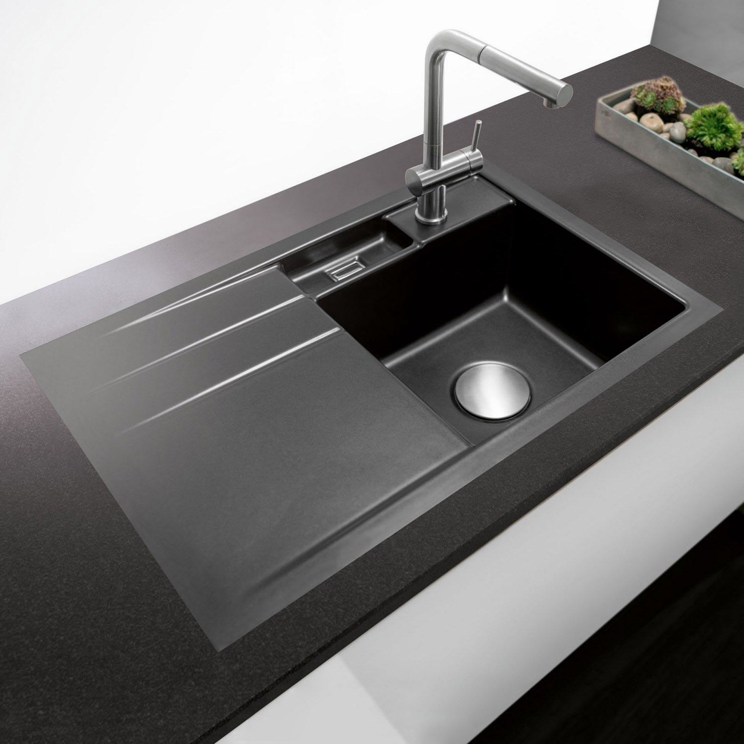 Systemceram Keradomo Bela 78 F Spüle rechts für flächenbündigen Einbau mit Handbetätigung, inkl. Armaturbohrung