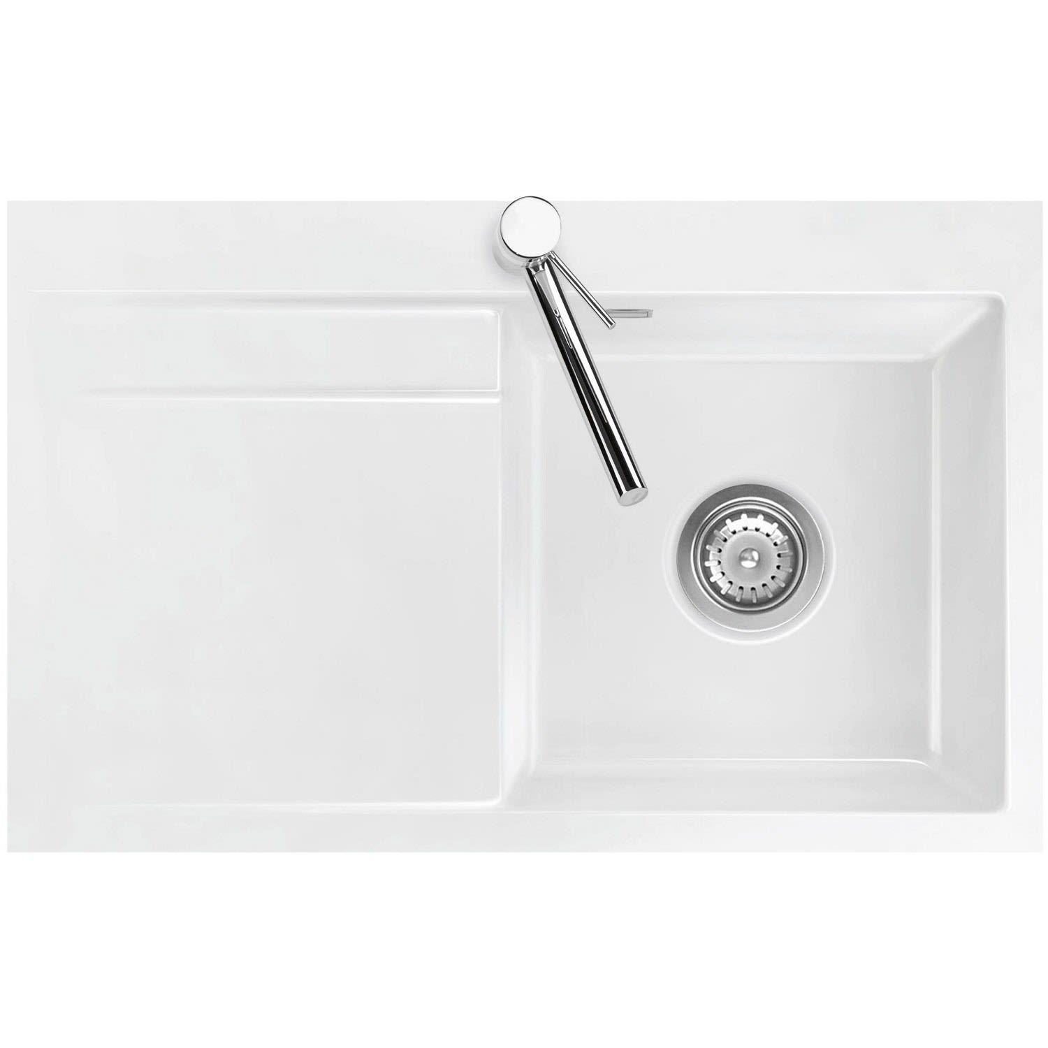 Systemceram Keradomo Stema 80 F Spüle rechts für flächenbündigen Einbau mit Handbetätigung, inkl. Armaturbohrung
