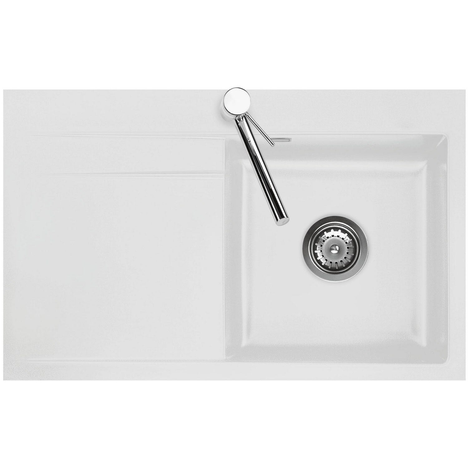 Systemceram Keradomo Stema 80 F Spüle rechts für flächenbündigen Einbau mit Handbetätigung, inkl. Armaturbohrung