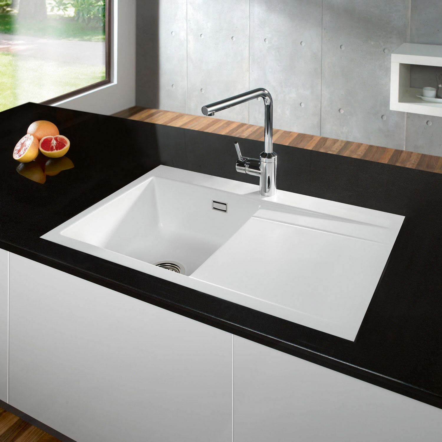 Systemceram Keradomo Stema 80 F Spüle links für flächenbündigen Einbau mit Handbetätigung, inkl. Armaturbohrung