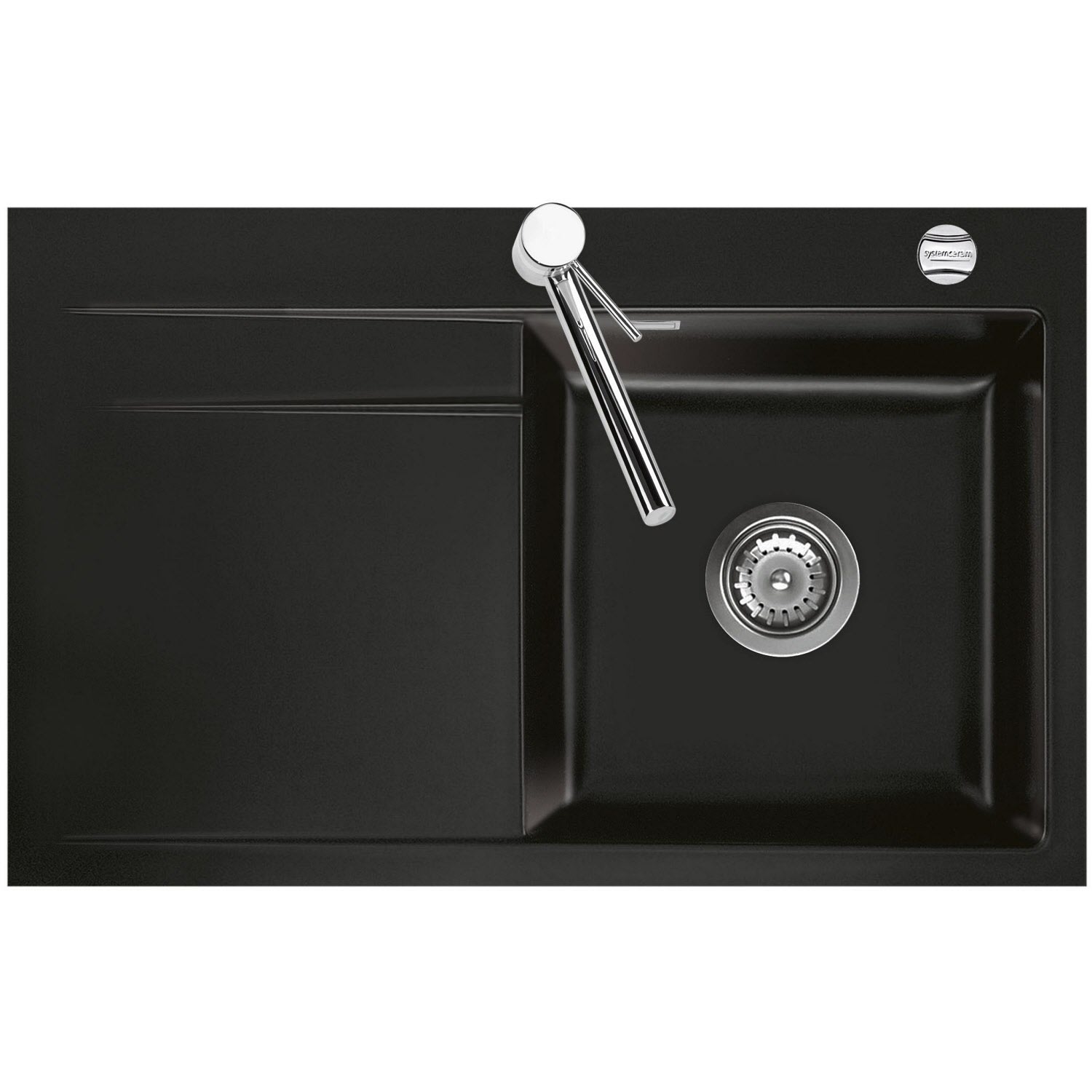 Systemceram Keradomo Stema 80 F Spüle rechts für flächenbündigen Einbau mit Excenterbetätigung, inkl. Armaturbohrung