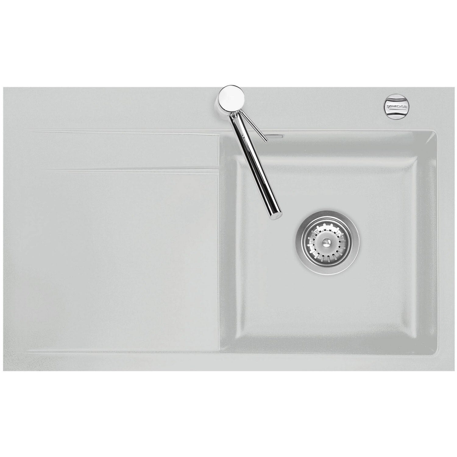 Systemceram Keradomo Stema 80 F Spüle rechts für flächenbündigen Einbau mit Excenterbetätigung, inkl. Armaturbohrung