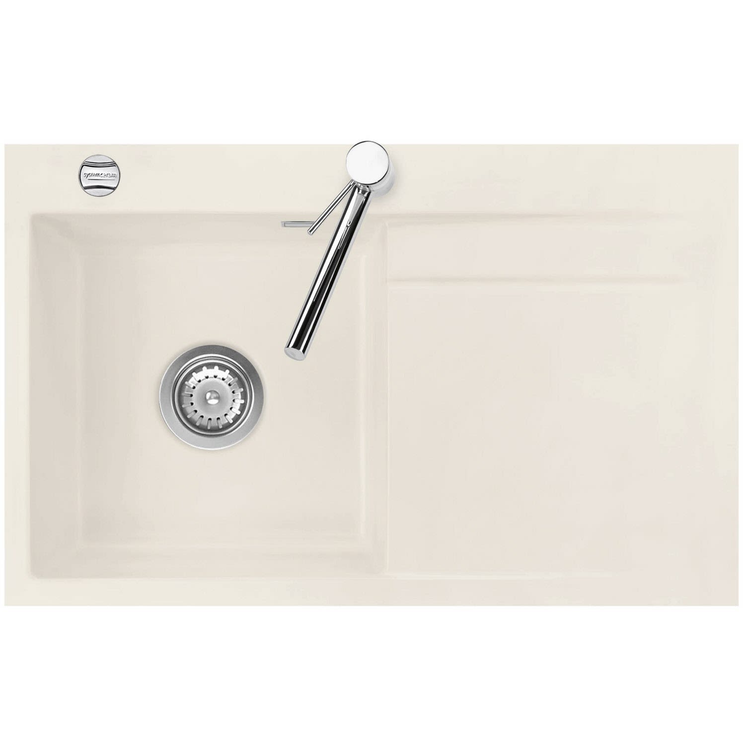Systemceram Keradomo Stema 80 F Spüle links für flächenbündigen Einbau mit Excenterbetätigung, inkl. Armaturbohrung