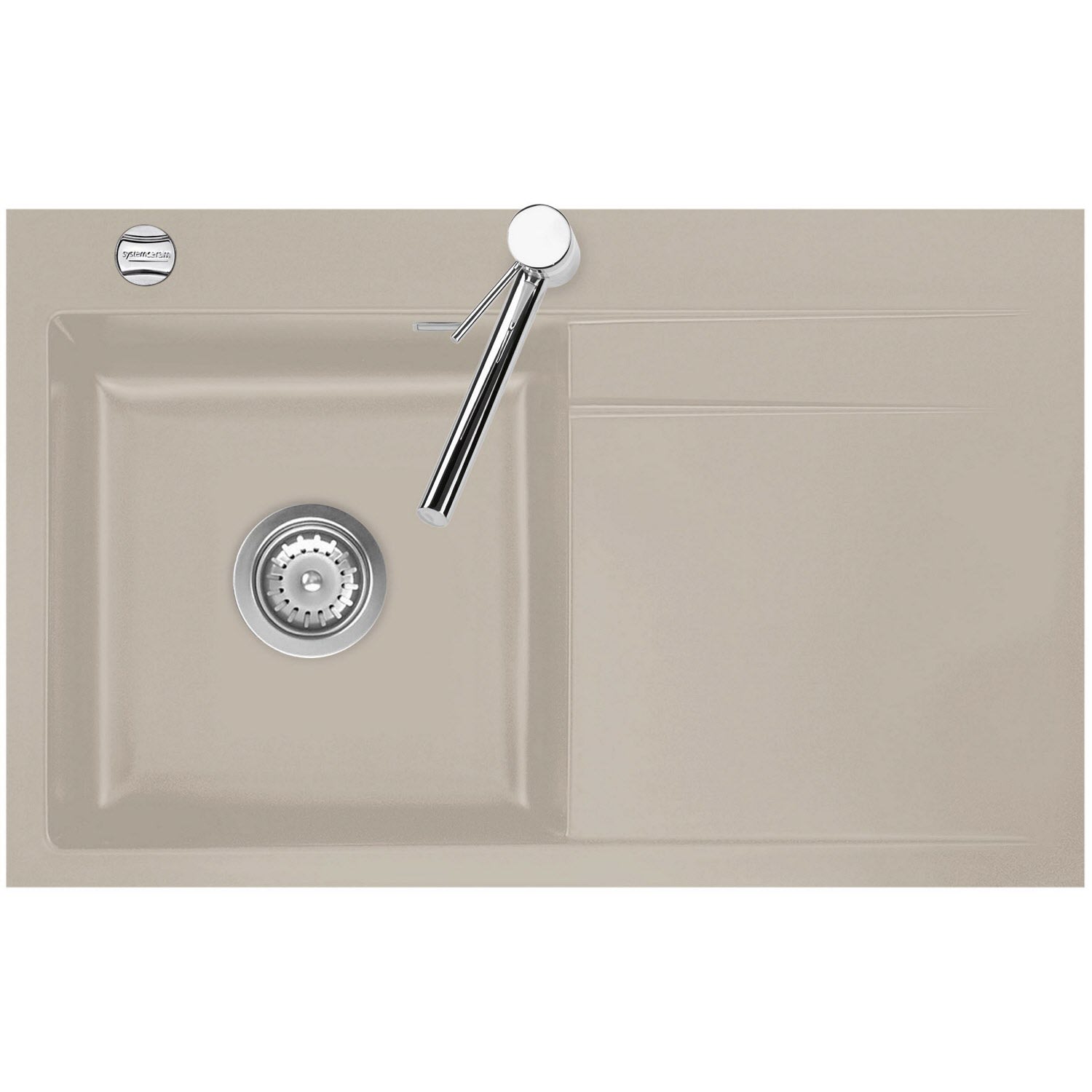 Systemceram Keradomo Stema 80 F Spüle links für flächenbündigen Einbau mit Excenterbetätigung, inkl. Armaturbohrung