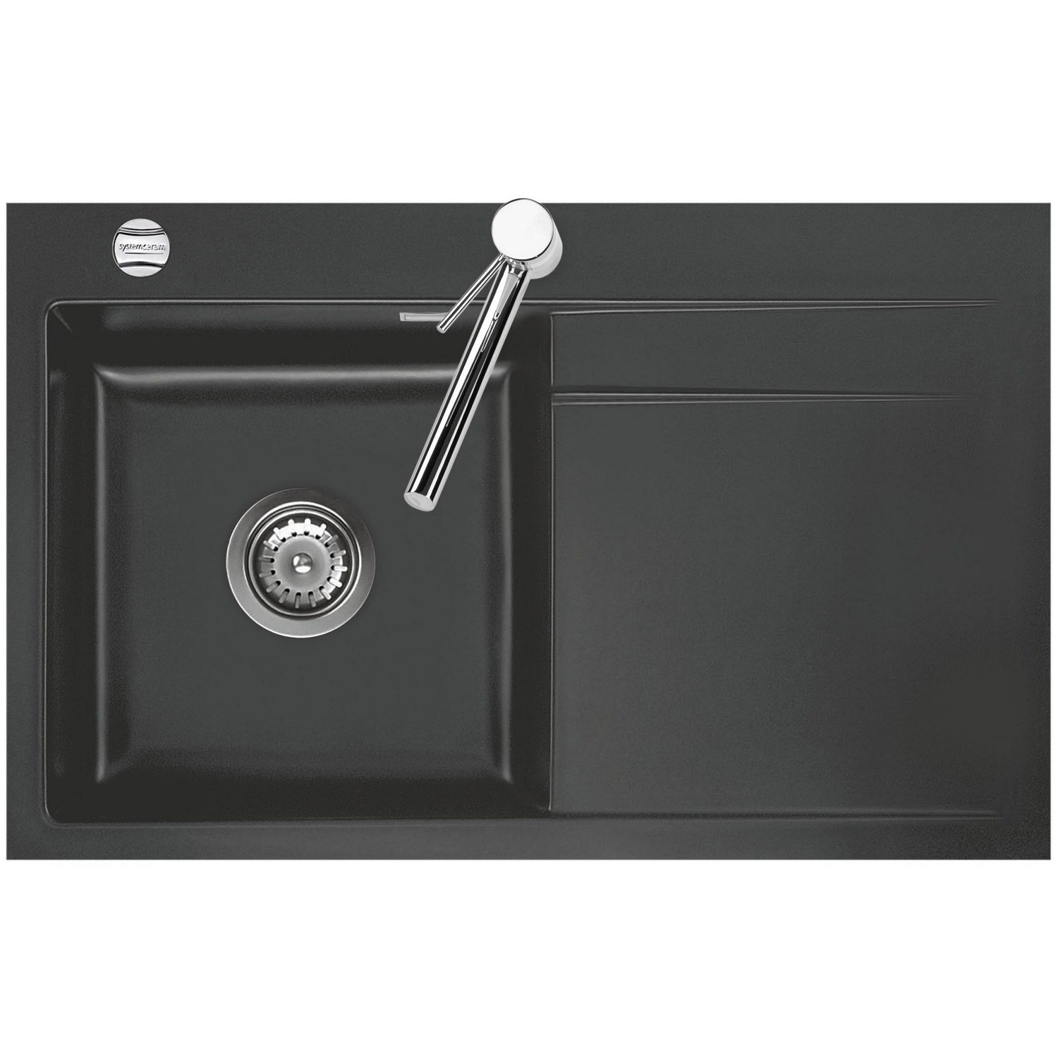 Systemceram Keradomo Stema 80 F Spüle links für flächenbündigen Einbau mit Excenterbetätigung, inkl. Armaturbohrung