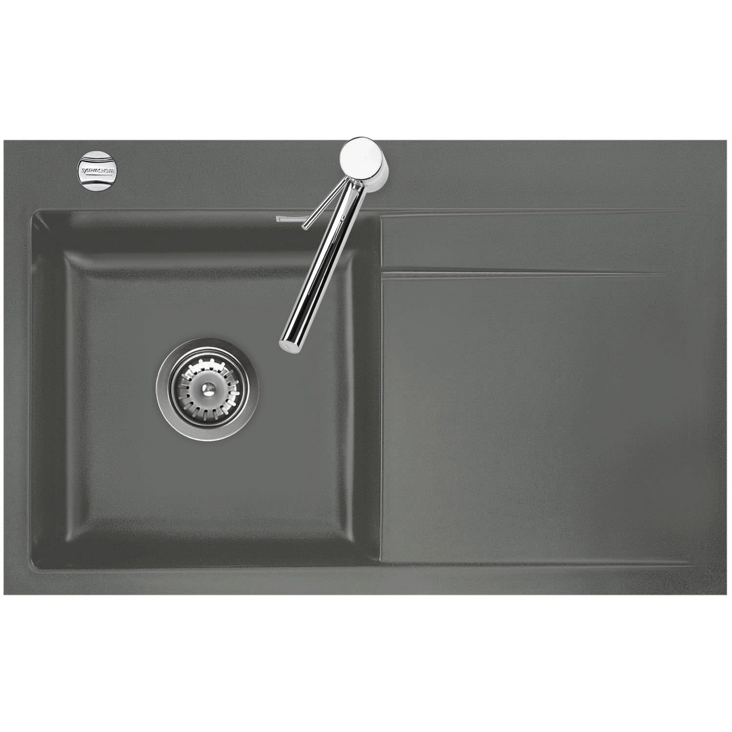 Systemceram Keradomo Stema 80 F Spüle links für flächenbündigen Einbau mit Excenterbetätigung, inkl. Armaturbohrung
