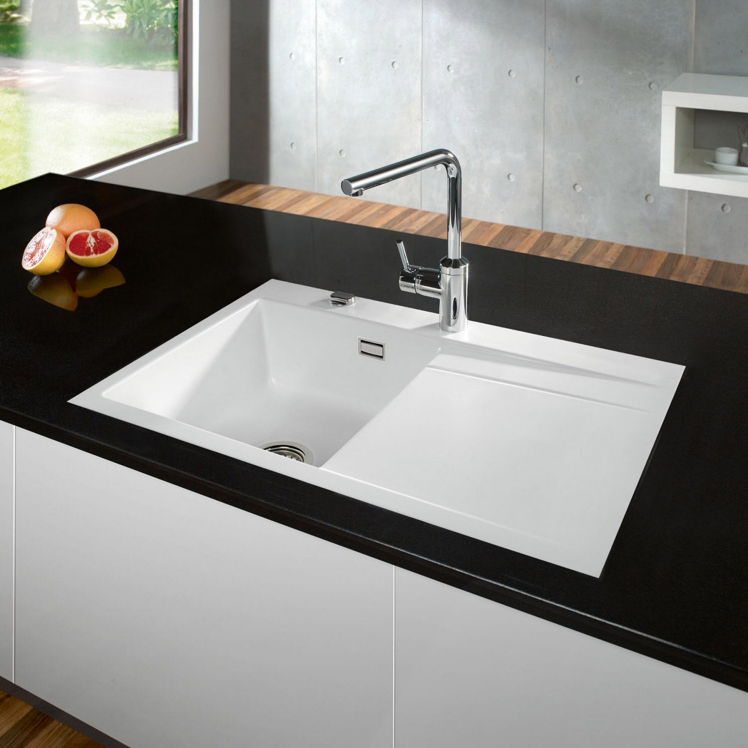 Systemceram Keradomo Stema 80 F Spüle links für flächenbündigen Einbau mit Excenterbetätigung, inkl. Armaturbohrung