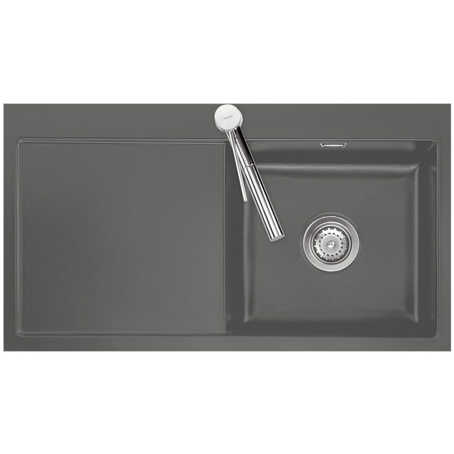 Systemceram Keradomo Mera 90 F Spüle rechts für flächenbündigen Einbau mit Handbetätigung, inkl. Armaturbohrung