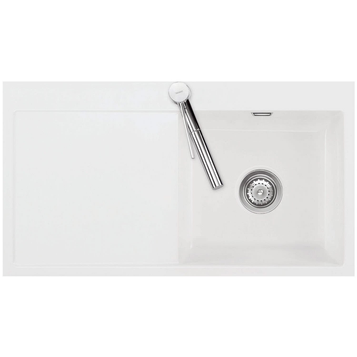 Systemceram Keradomo Mera 90 F Spüle rechts für flächenbündigen Einbau mit Handbetätigung, inkl. Armaturbohrung