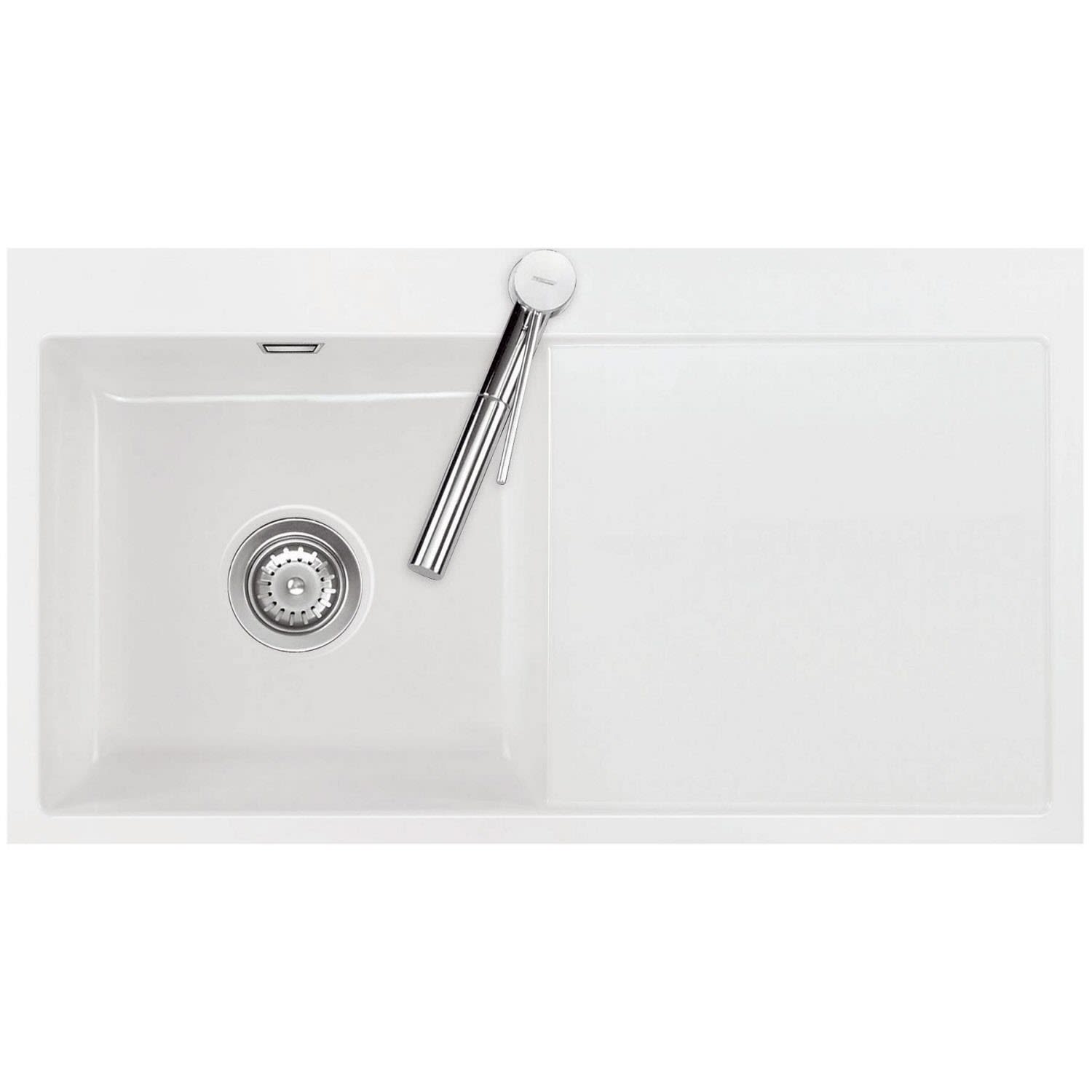 Systemceram Keradomo Mera 90 F Spüle links für flächenbündigen Einbau mit Handbetätigung, inkl. Armaturbohrung