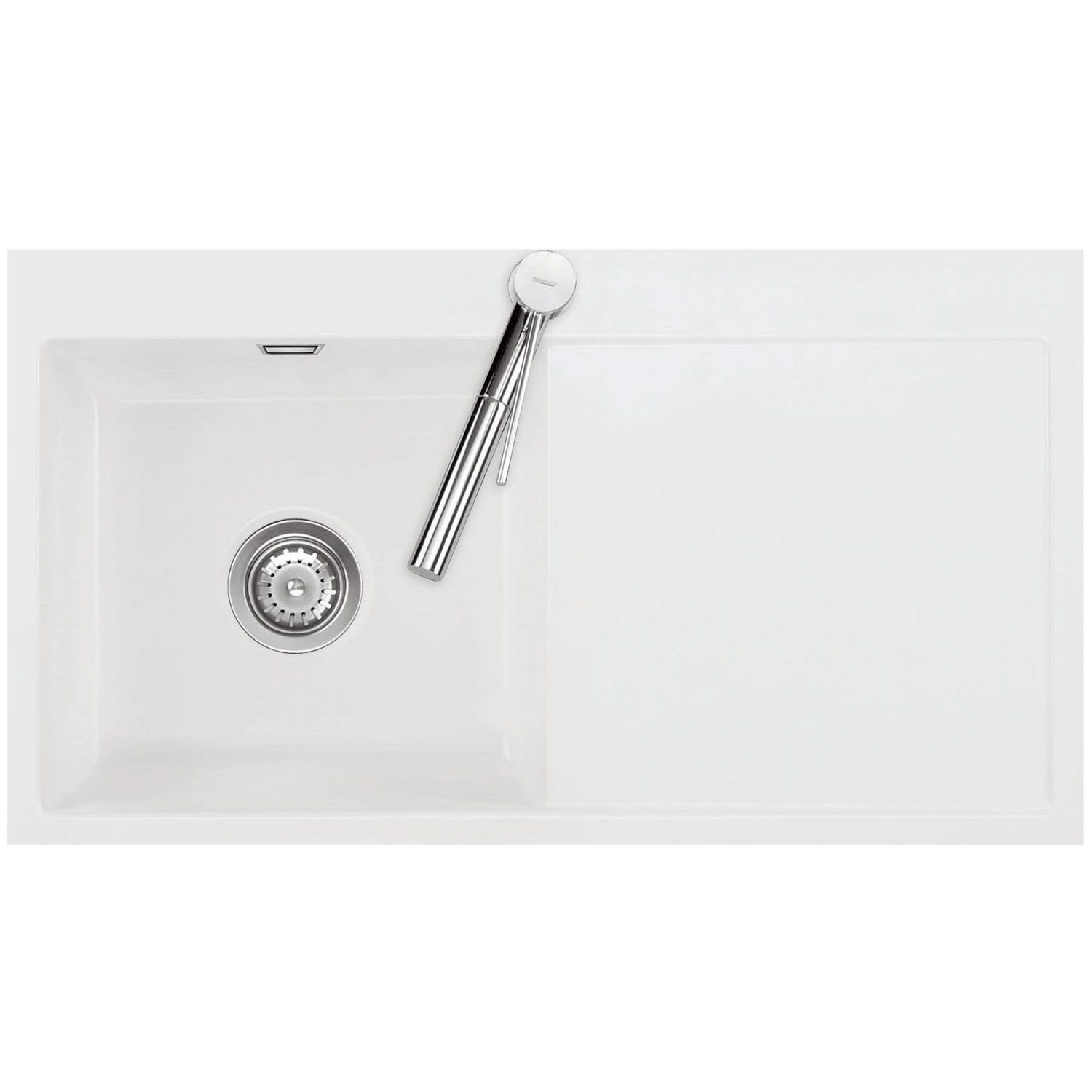 Systemceram Keradomo Mera 90 F Spüle links für flächenbündigen Einbau mit Handbetätigung, inkl. Armaturbohrung