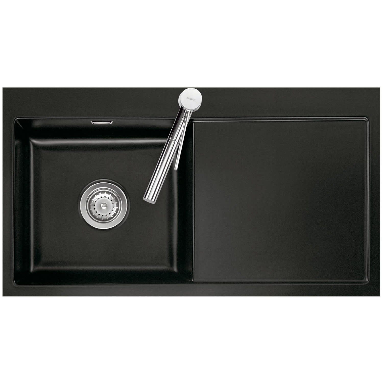 Systemceram Keradomo Mera 90 F Spüle links für flächenbündigen Einbau mit Handbetätigung, inkl. Armaturbohrung