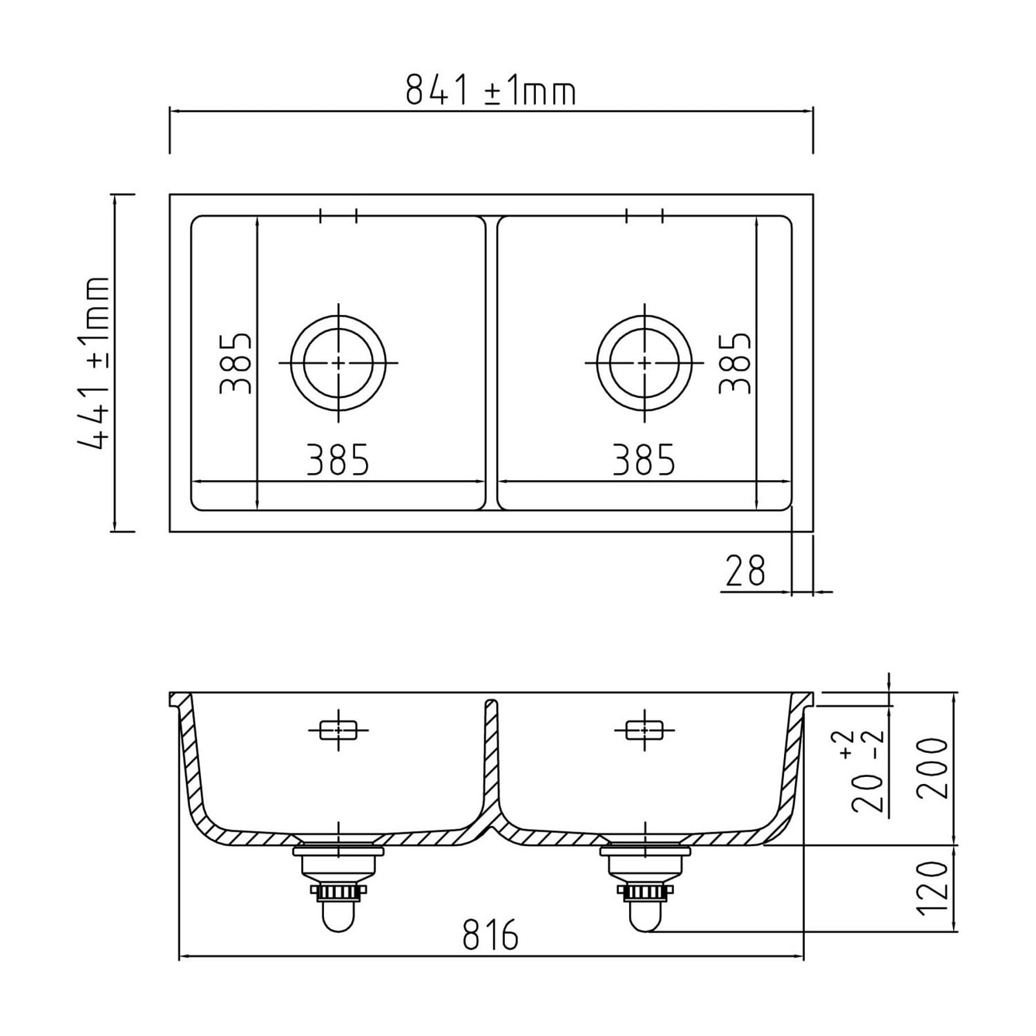 Systemceram Keradomo Mera Twin U Spüle zum Unterbau mit Excenterbetätigung