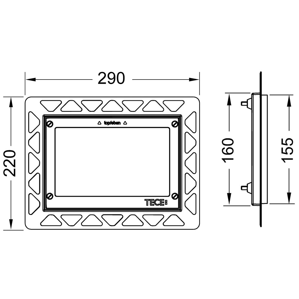 - Einbauset für flächenbündige Montage der WC-Betätigungsplatte TECE Loop Glas in einer Trockenbauwand