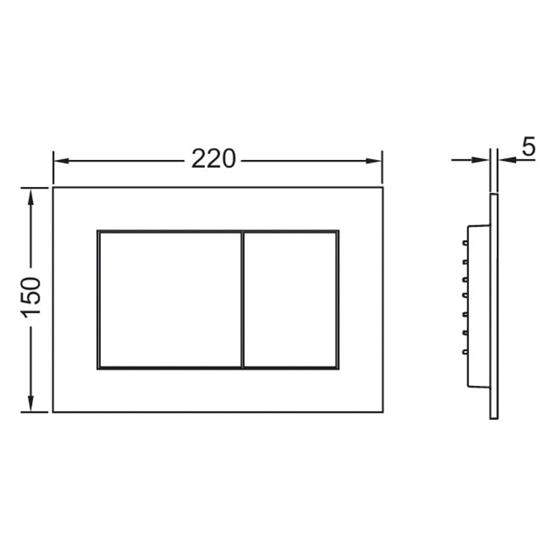 Diese WC-Betätigungsplatte besticht durch kompromissloses Design: klare Linien, moderne Optik und zeitlose Eleganz machen sie zu einem Statement-Element in der Inneneinrichtung. Die großzügigen Tasten mit nur 5 mm Aufbau liegen in einem flachen Rahmen, der sich flächenbündig montieren lässt.