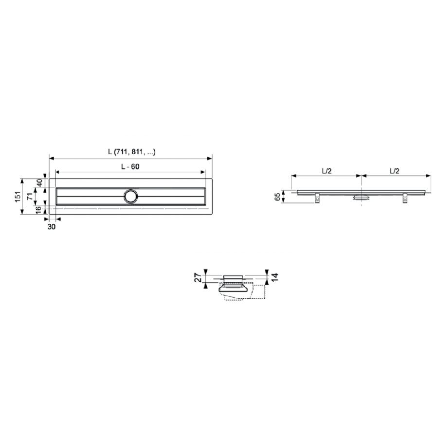 - mit mittigem Anschlussstutzen für Ablauf