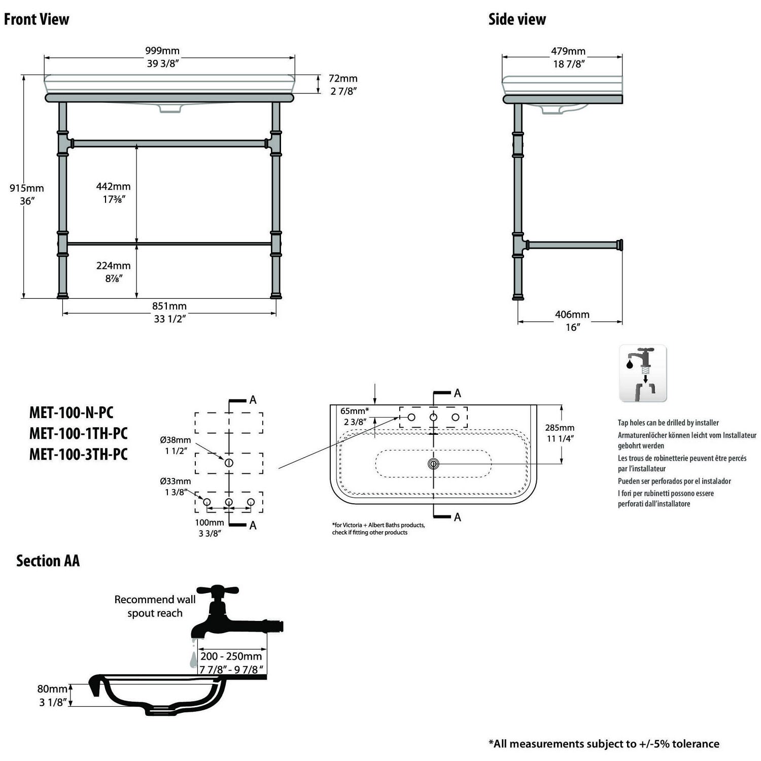 Victoria & Albert Metallo 100 Waschtisch mit 2 Füßen, 1 Armaturloch