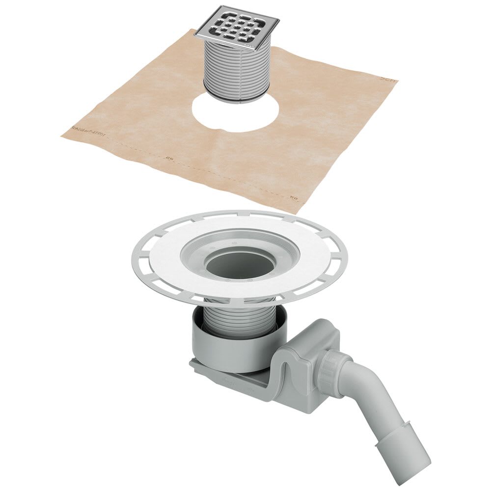 - mit Schlüter-KERDI-Abdichtungsmanschette für den Einsatz von Flüssigfolien oder Abdichtungsbahnen (z.B. KERDI) bei Dünnbettkonstruktionen