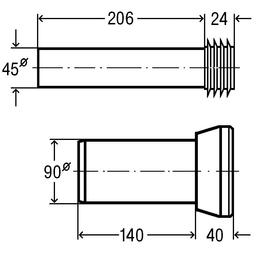 - Spülrohr mit Verbinder 4,5 x 23 cm