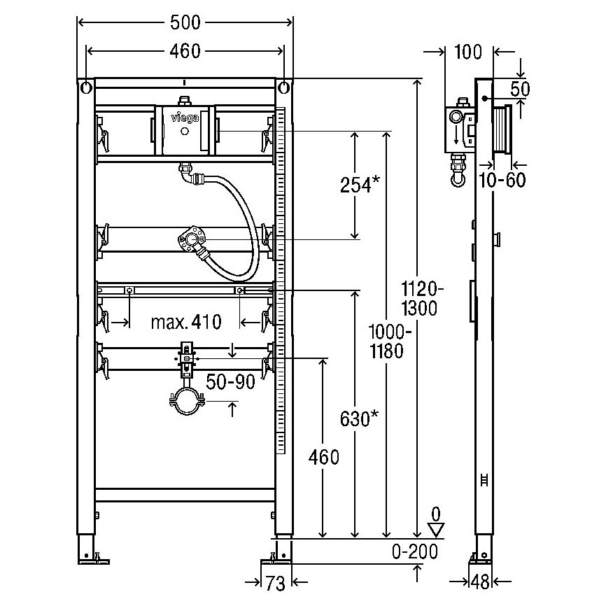 Viega Prevista Dry-Urinal-Element Wasseranschluss universell Modell 8560.32 Anschluss 112-130 cm