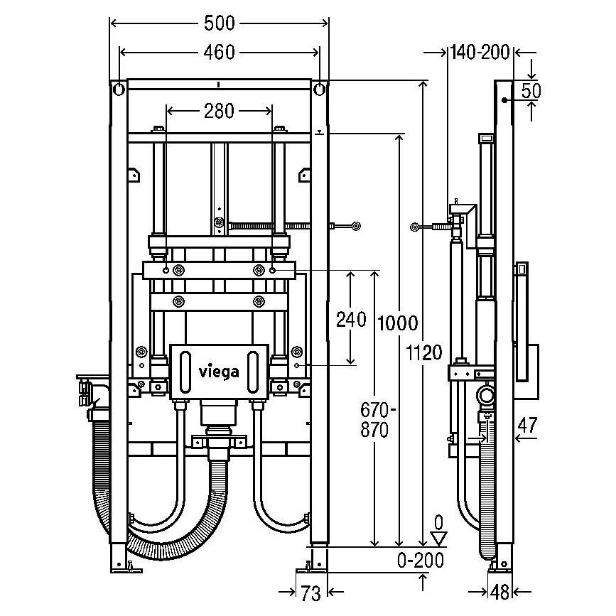 Viega Prevista Dry-Waschtisch-Element, 112 cm, Keramikhöhe vom Nutzer per Knopfdruck indiv. verstellbar Modell 8535.32