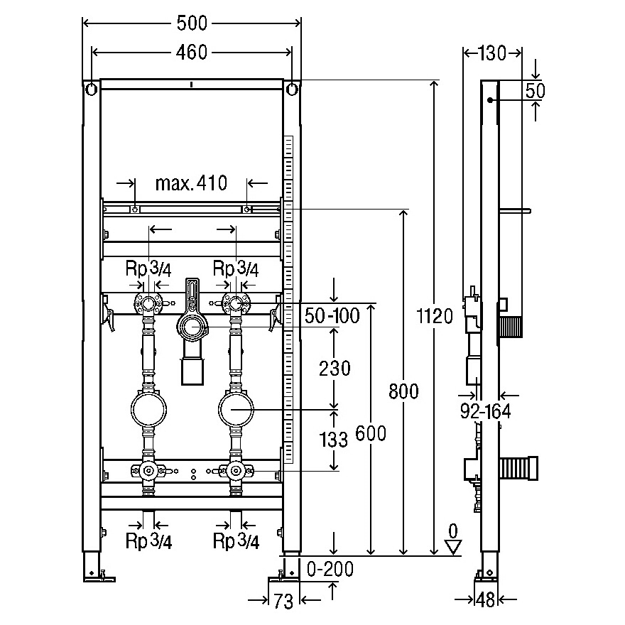 Keramikhöhe und Zählereinheit verstellbar (Träger mit Maßband zur Ausrichtung)