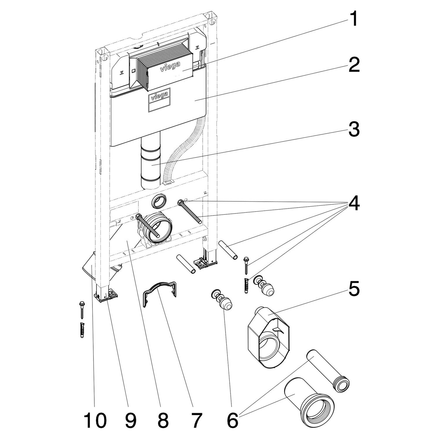 Viega Prevista Dry-WC-Element mit Dusch-WC-Anschluss Modell 8522 Anschluss 112 cm