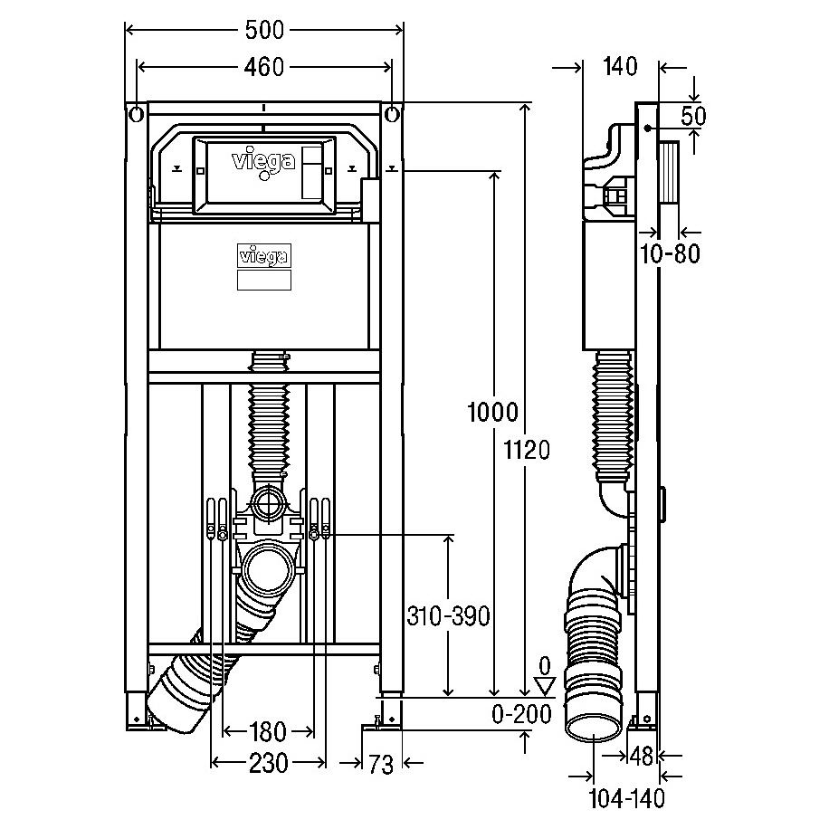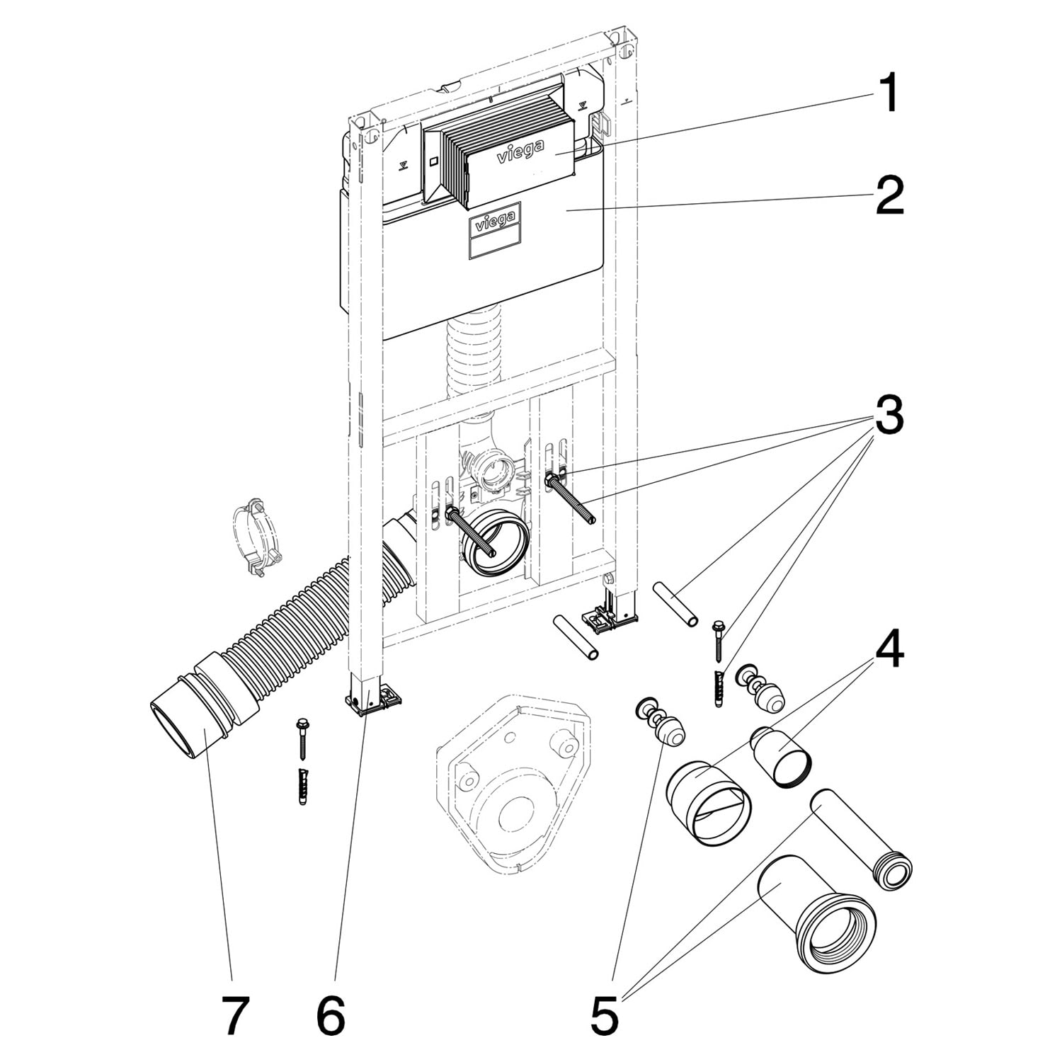 Viega Prevista Dry-WC-Element Keramikhöhe verstellbar Modell 8522.31 Anschluss 112 cm