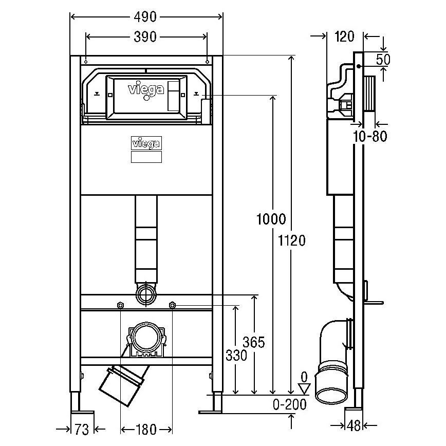 Viega Prevista Dry-WC-Element Objektvariante Modell 8524 Anschluss 112 x 49 cm