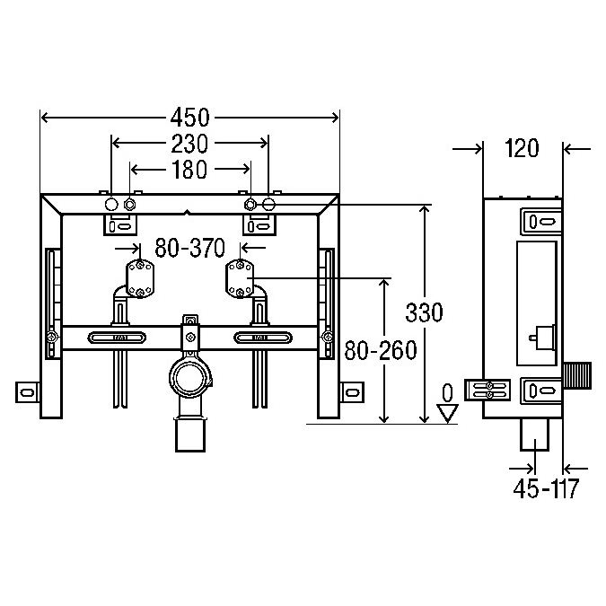 - Halterung höhenverstellbar und schallgeschützt für Kalt- und Warmwasseranschluss