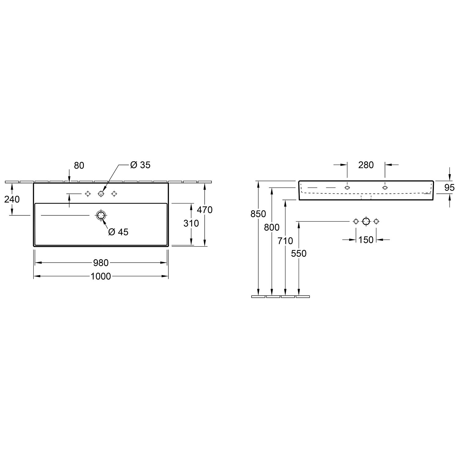 Villeroy & Boch Memento 2.0 Waschtisch 100 cm mit 1 Hahnloch, ohne Überlauf