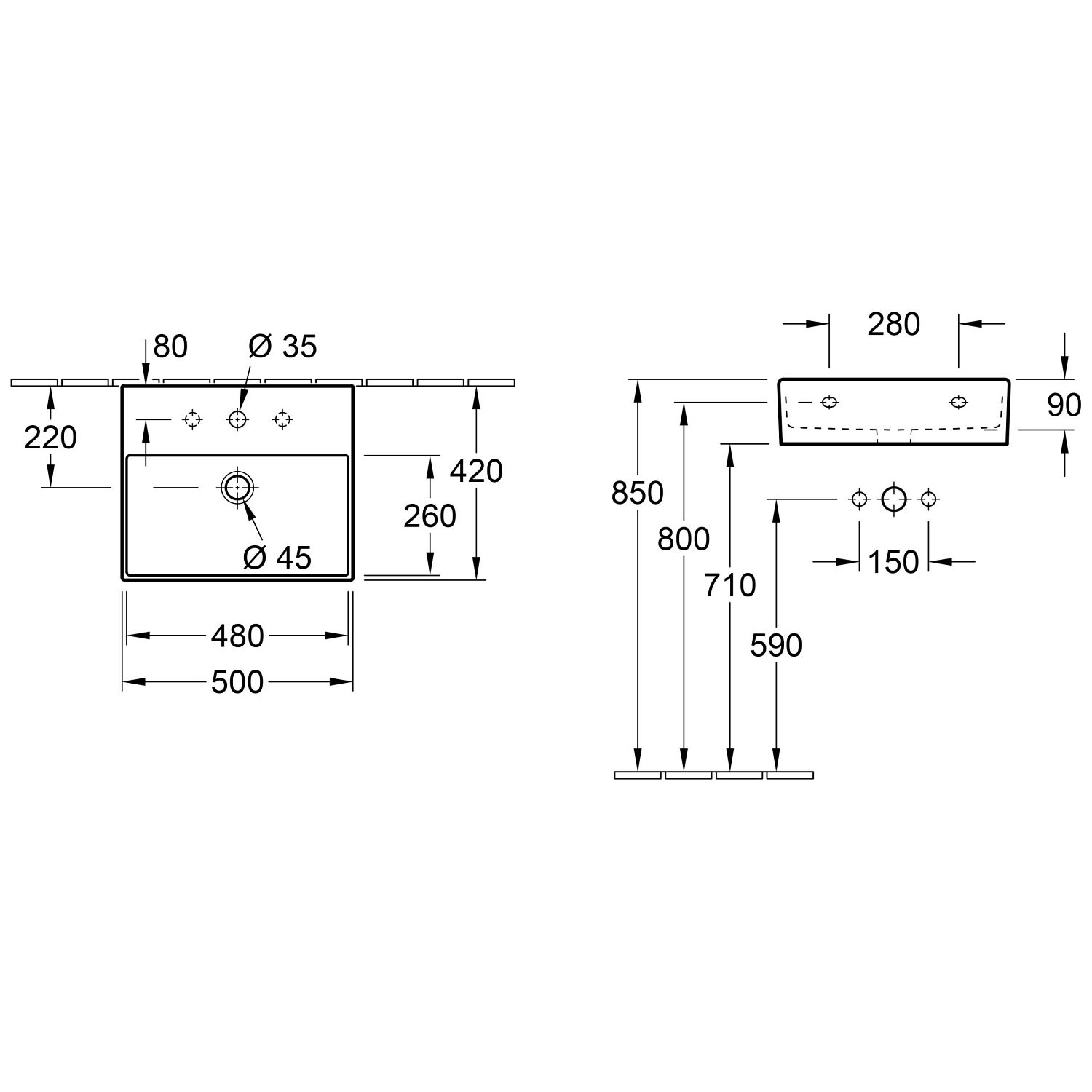 - zur Wandbefestigung (Waschtischbefestigung bitte separat bestellen)