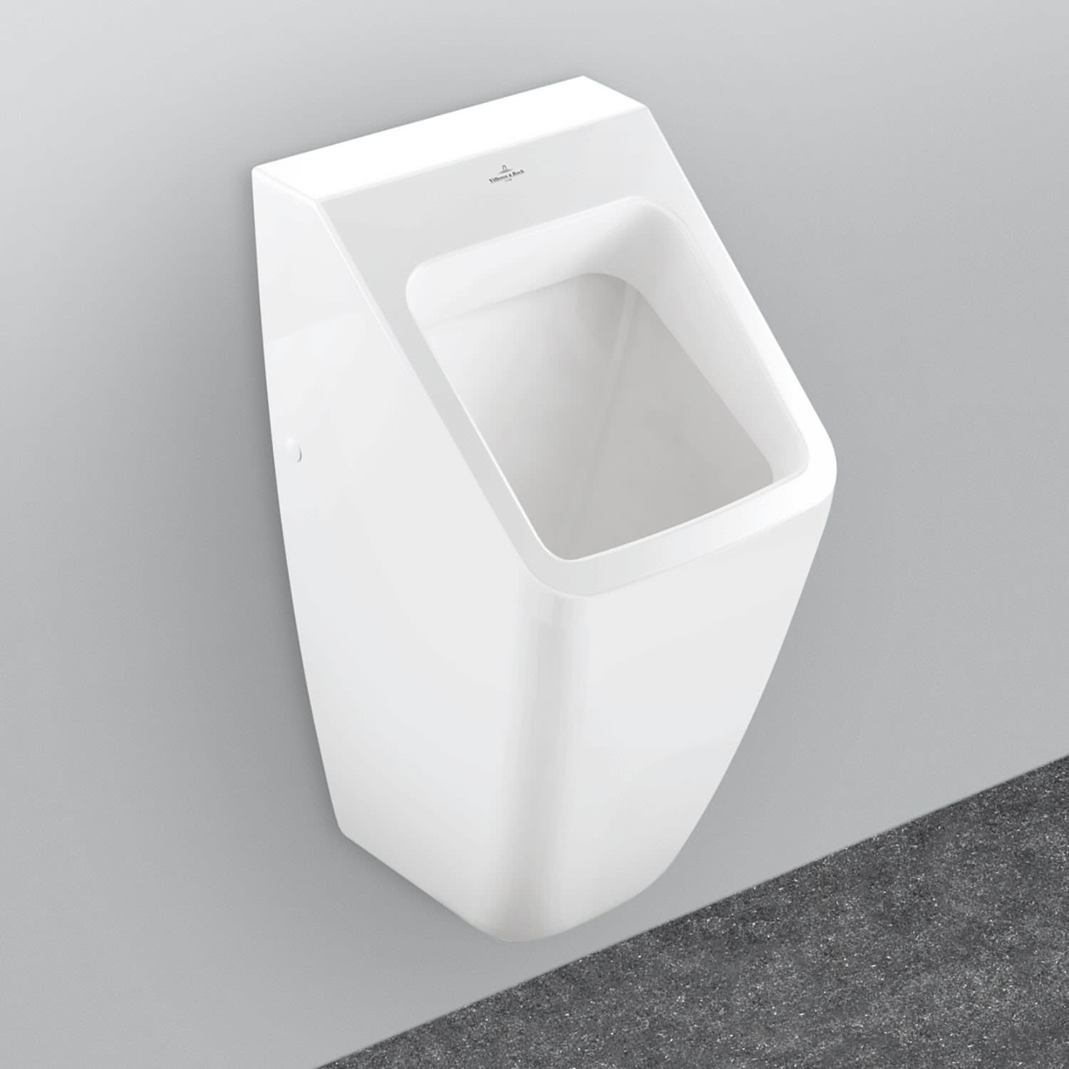 Das rechteckige Architectura Absaug-Urinal von Villeroy & Boch besticht durch puristisches Design sowie hohe Funktionalität. Sein verdeckter Zulauf sorgt nicht nur für einen einheitlichen und klaren Look im Badezimmer, sondern erleichtert auch die Reinigung. Außerdem leitet die spezielle Neigung der Rückwand im Innenbecken den Urin direkt in den Ablauf. Das vermeidet unerwünschte Spritzer – clever und hygienisch! Ein weiterer Pluspunkt: Bei einer Wartung muss das Urinal nicht abgenommen werden, da die patentierte Siphonkartusche werkzeuglos und schnell austauschbar ist. Das Urinal eignet sich für eine Montage ohne Deckel.