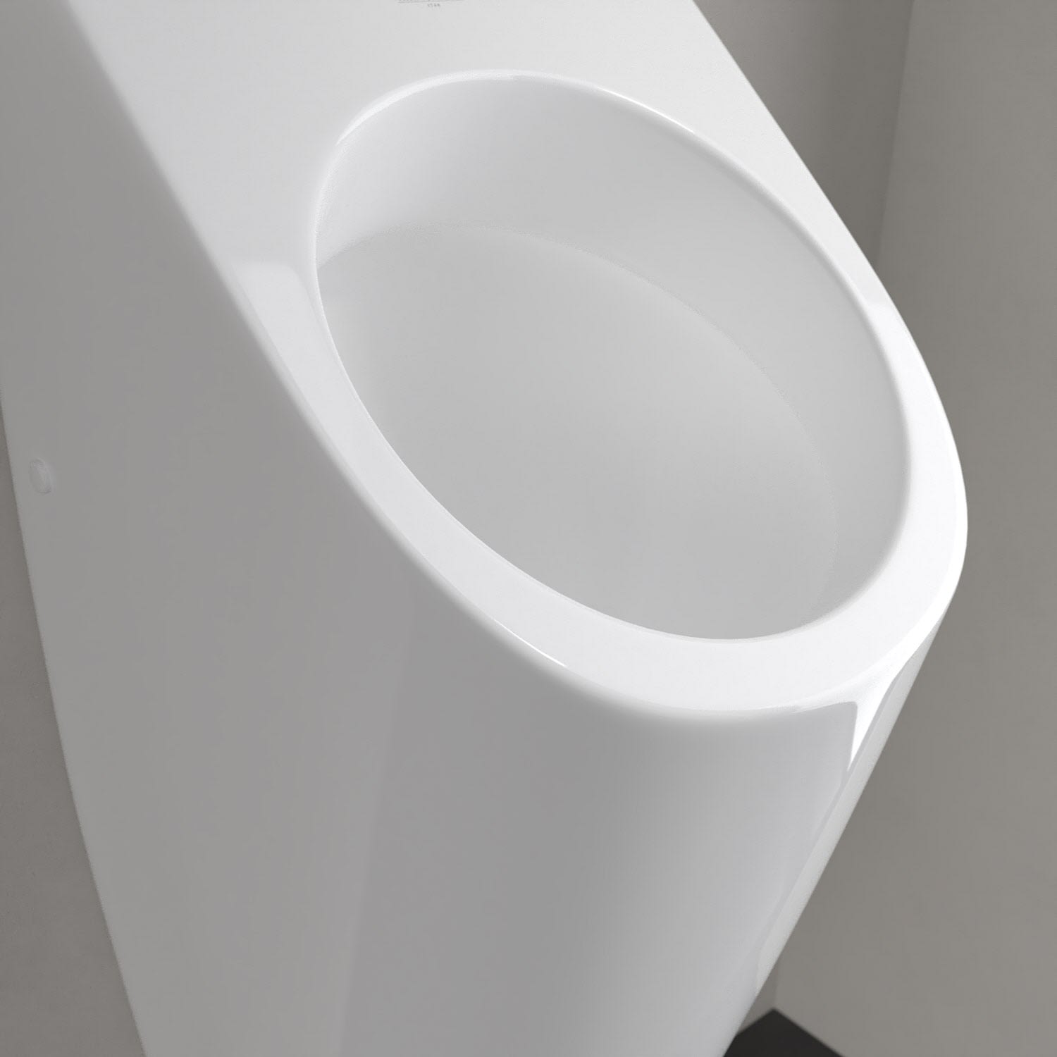 Das ovale Architectura Absaug-Urinal von Villeroy & Boch besticht durch puristisches Design sowie hohe Funktionalität. Sein verdeckter Zulauf sorgt nicht nur für einen einheitlichen und klaren Look im Badezimmer, sondern erleichtert auch die Reinigung. Außerdem leitet die spezielle Neigung der Rückwand im Innenbecken den Urin direkt in den Ablauf. Das vermeidet unerwünschte Spritzer – clever und hygienisch! Ein weiterer Pluspunkt: Bei einer Wartung muss das Urinal nicht abgenommen werden, da die patentierte Siphonkartusche werkzeuglos und schnell austauschbar ist. Das Urinal eignet sich für eine Montage ohne Deckel.