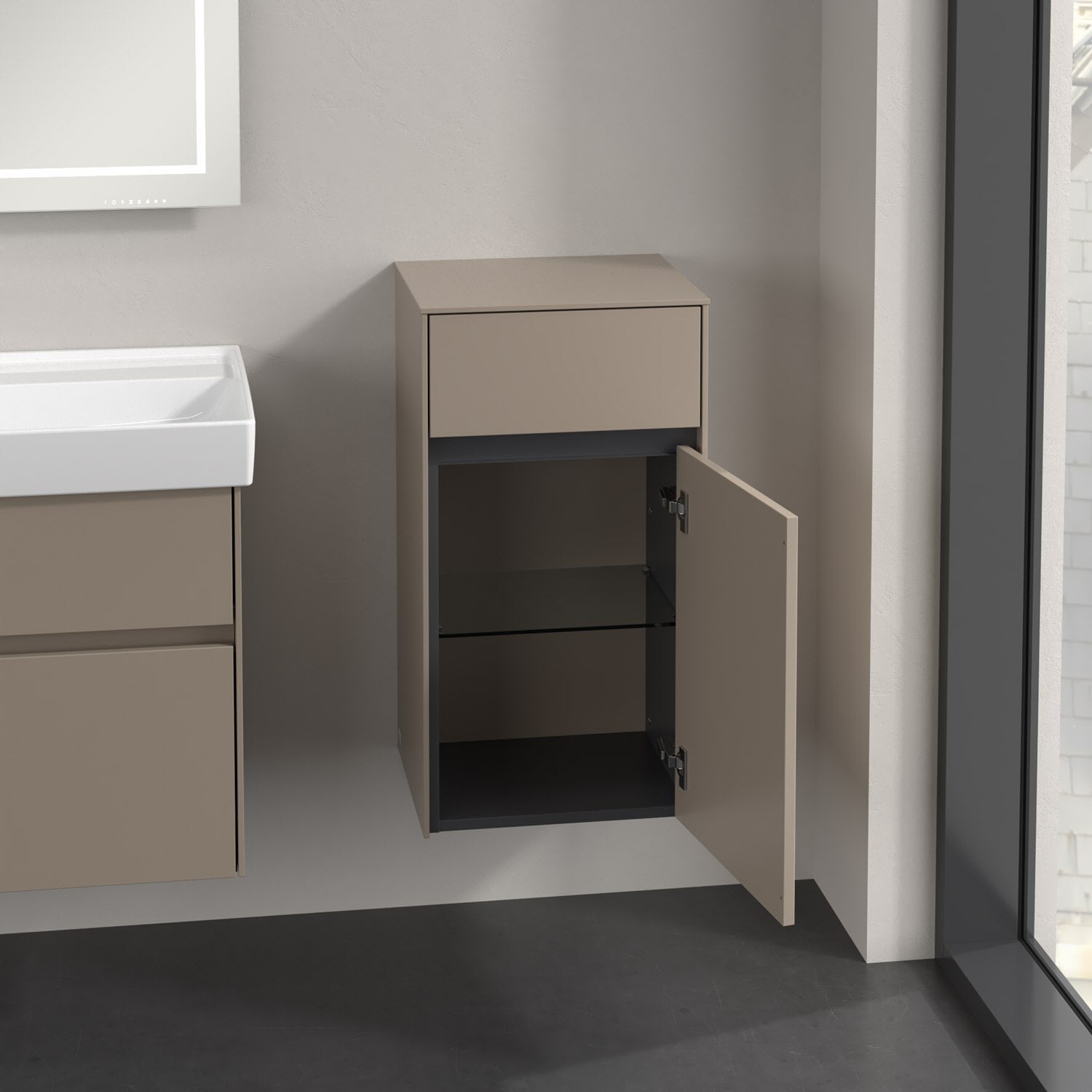 Villeroy & Boch Collaro Seitenschrank 40,4 x 74,8 cm mit 1 Auszug und 1 Tür, Anschlag rechts