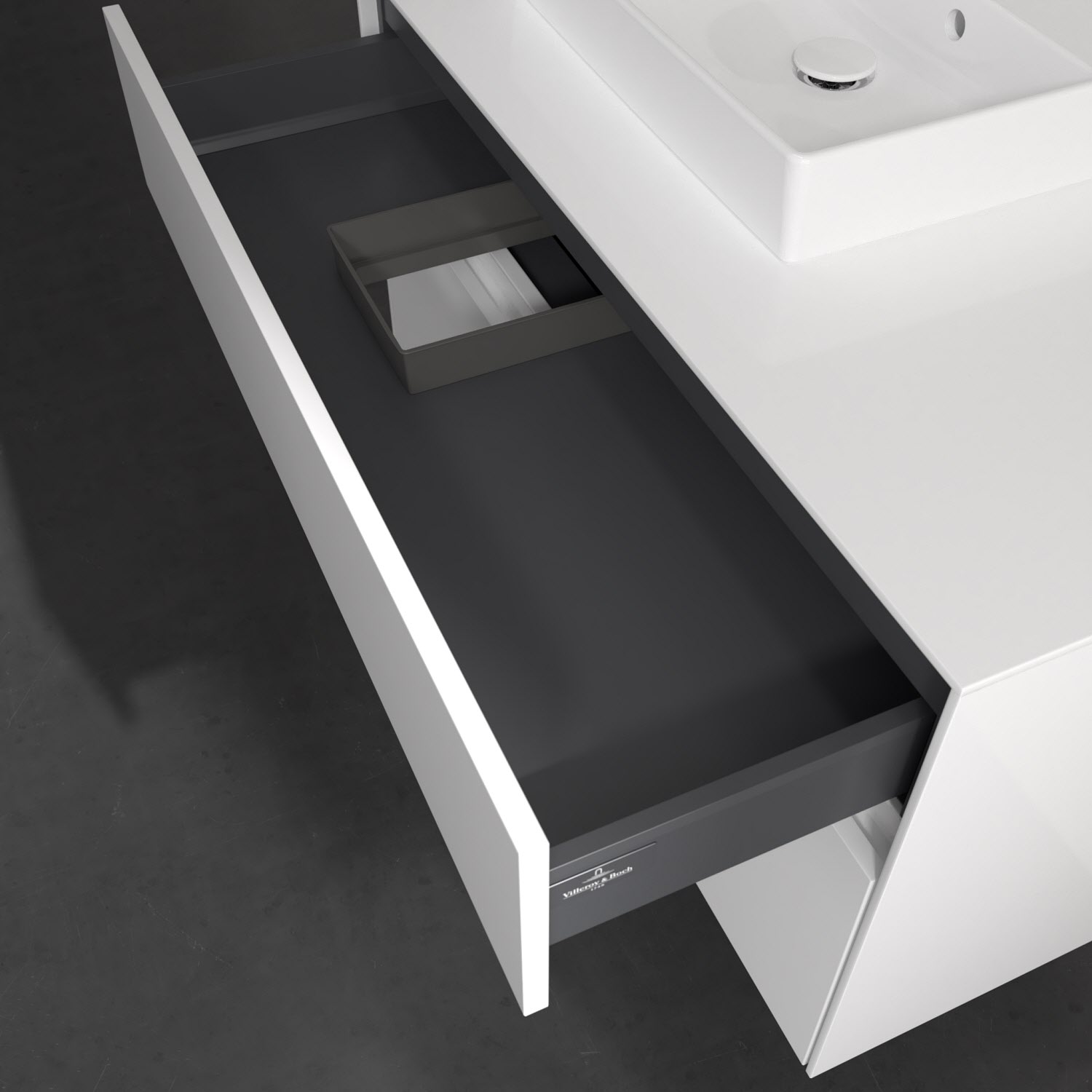 - kein Umfallen oder Verrutschen von Pflegeprodukten in den Schubladen dank rutschhemmendem Boden