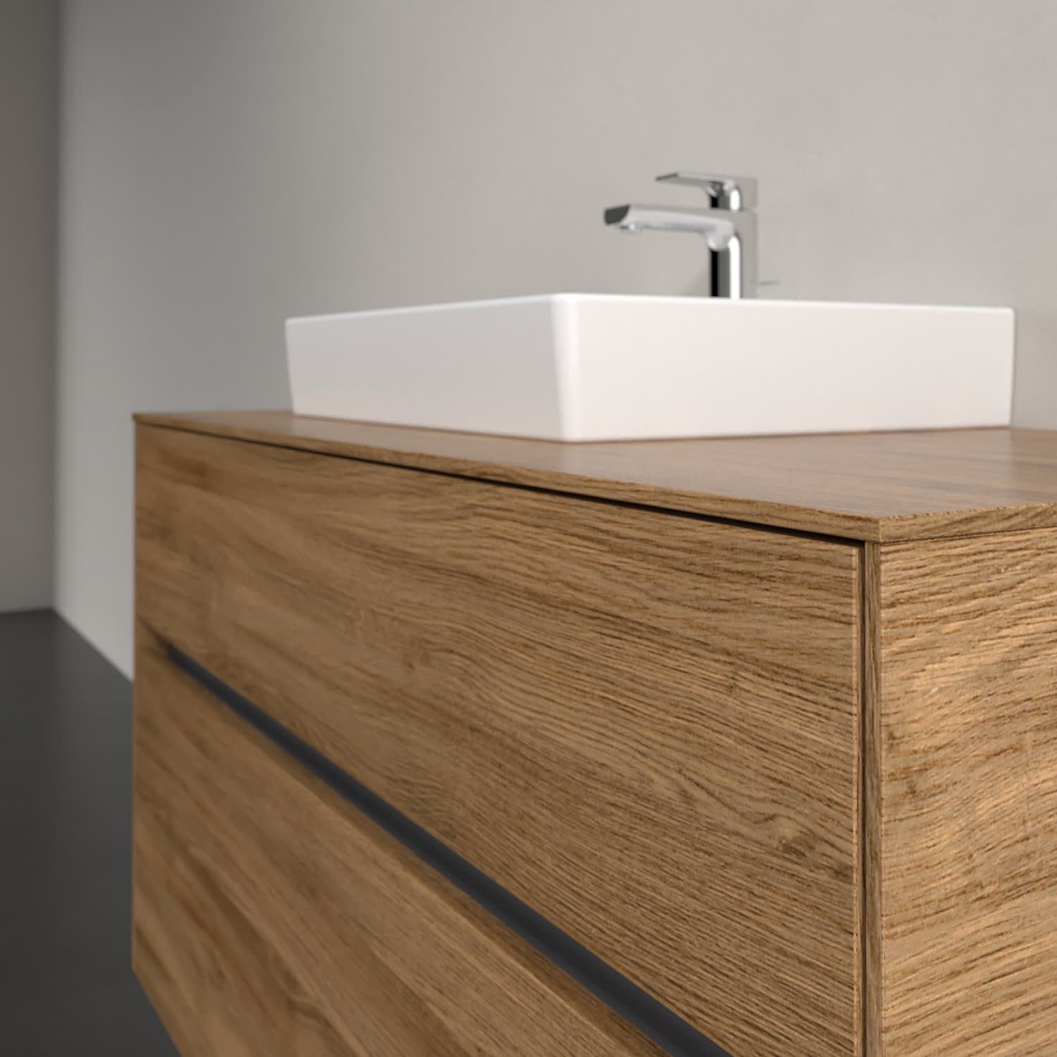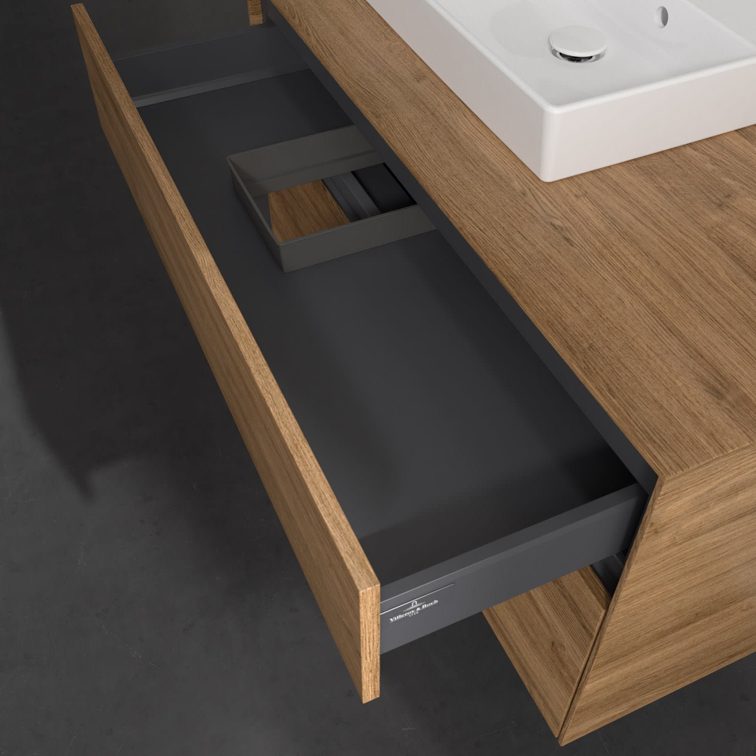 Stauraumwunder im zeitgemäßen Design: Der Villeroy & Boch Waschbeckenunterschrank aus der Collaro Kollektion eignet sich besonders für Familienbäder und bietet genau den Platz, der dort benötigt wird. Eine integrierte Griffleiste sorgt für eine schlichte, moderne Front. Im Inneren bietet das Möbelstück mit vier Auszügen erstaunlich viel Komfort – ermöglicht durch großzügiges Platzangebot und integrierte Antirutschmatten. Variabel setzbare Glasabtrennungen und mitgelieferte Accessory Boxen sorgen für den nötigen Überblick. Dank SoftClosing und Selbsteinzug lassen sich die Auszüge nach der Nutzung lautlos schließen.