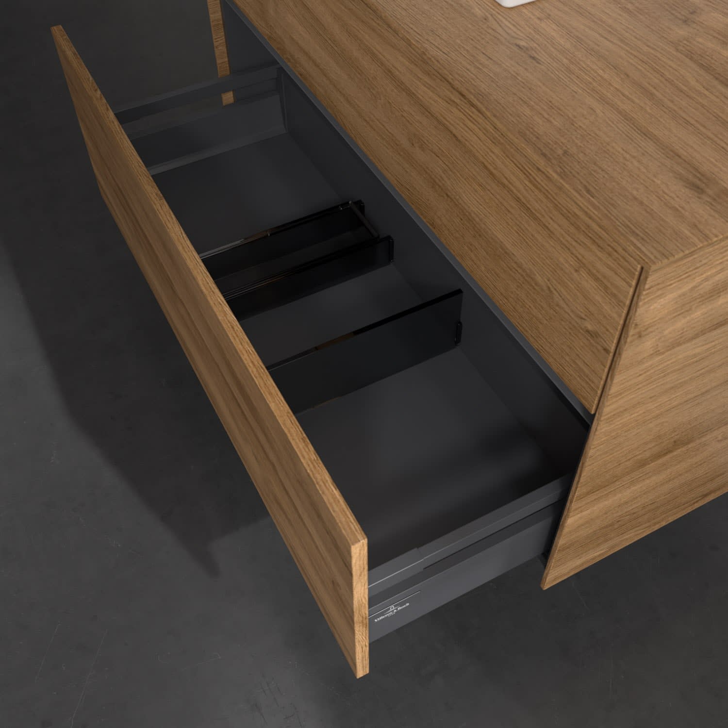 - kein Umfallen oder Verrutschen von Pflegeprodukten in den Schubladen dank rutschhemmendem Boden