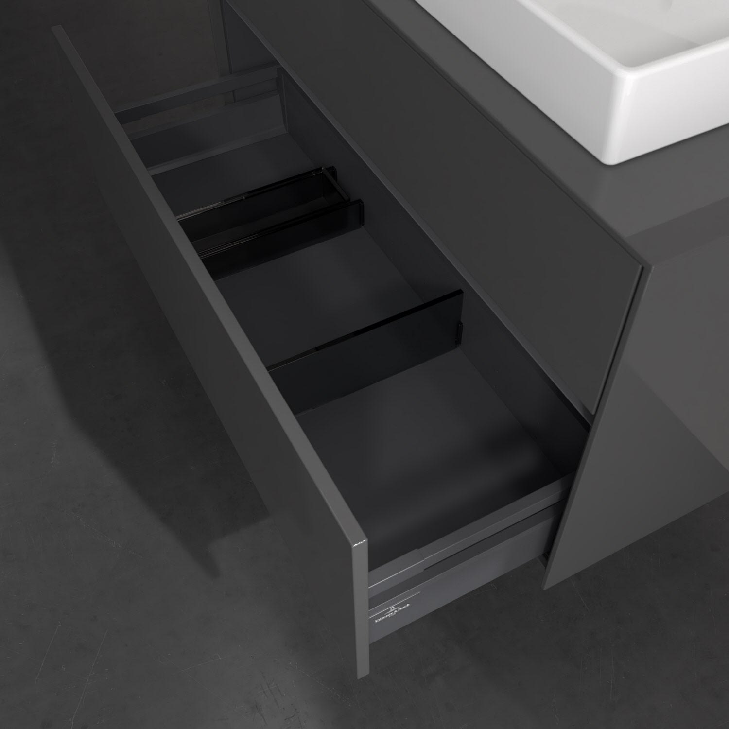 - kein Umfallen oder Verrutschen von Pflegeprodukten in den Schubladen dank rutschhemmendem Boden