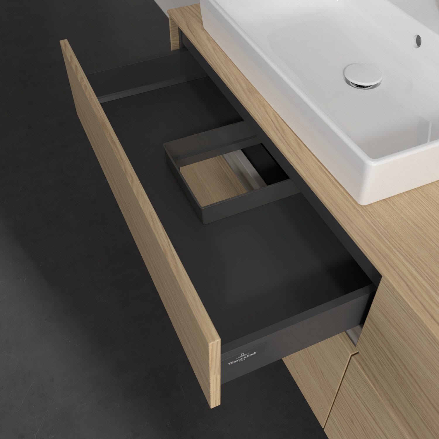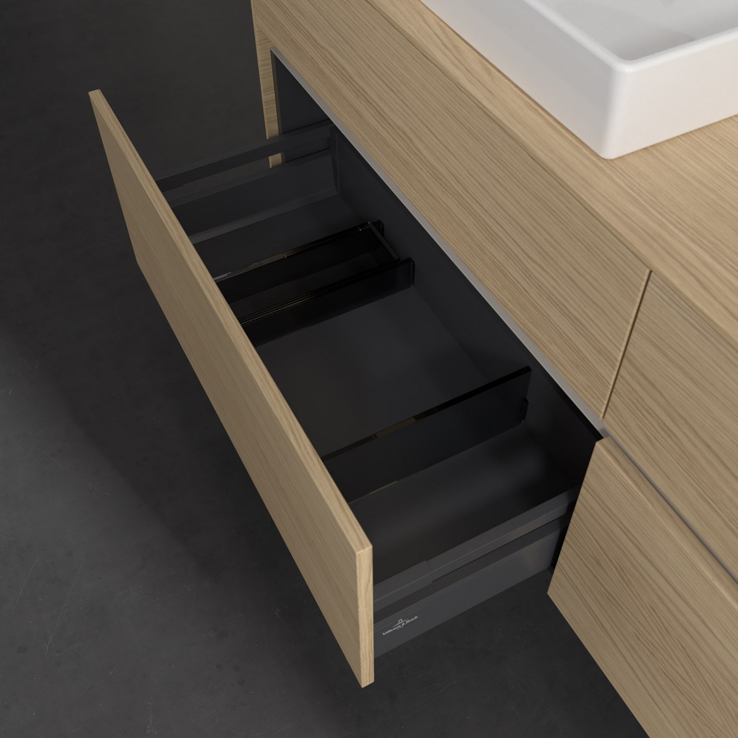- kein Umfallen oder Verrutschen von Pflegeprodukten in den Schubladen dank rutschhemmendem Boden