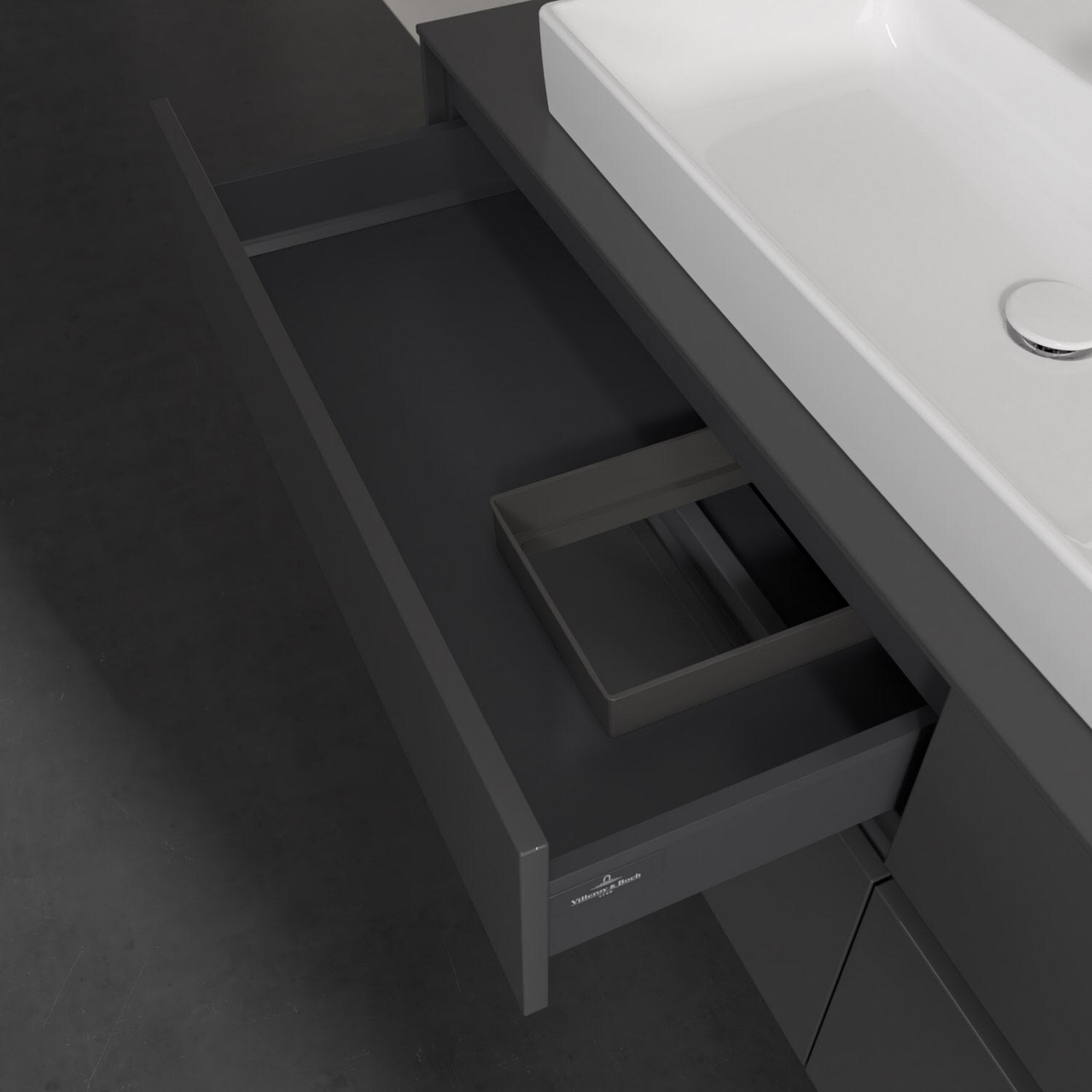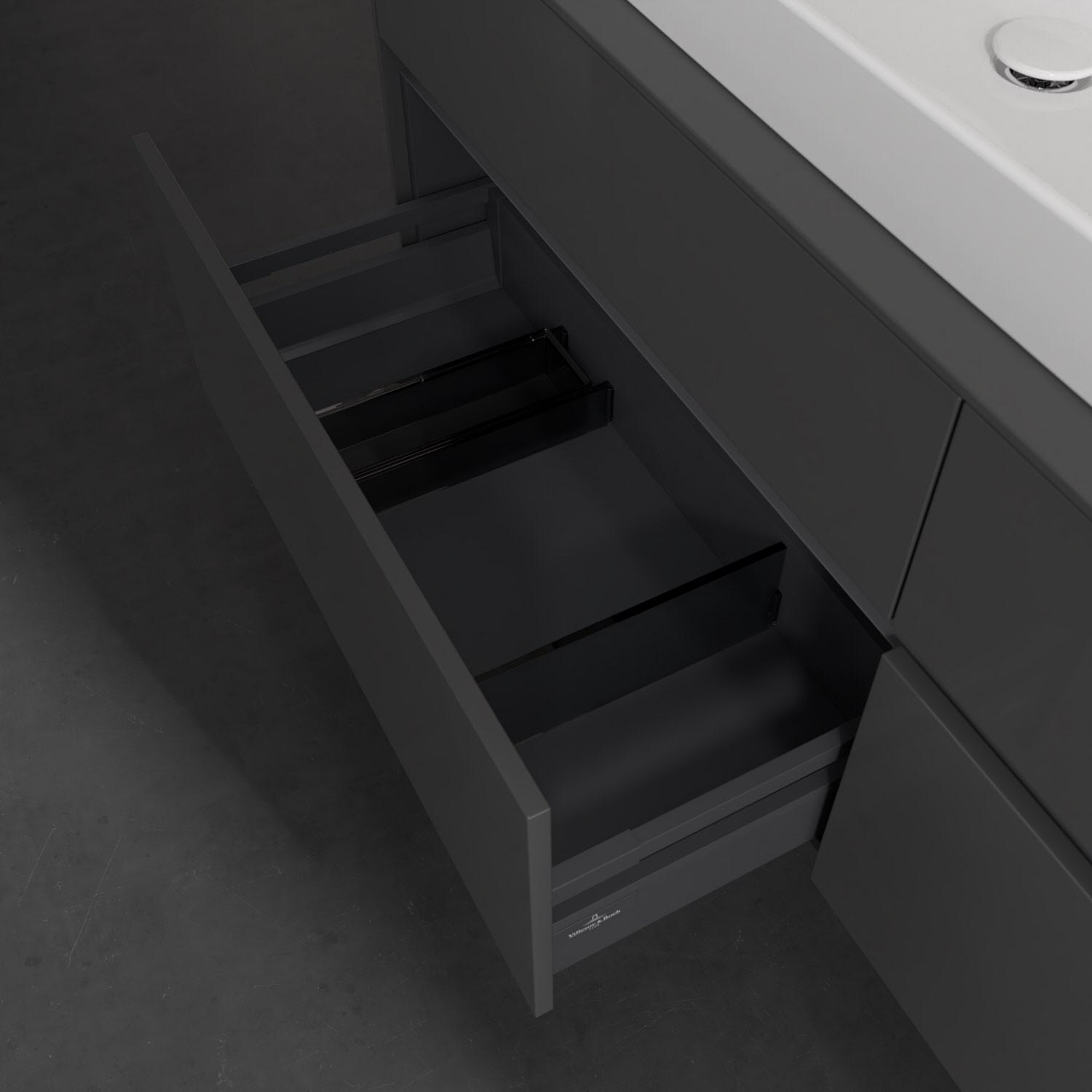 - kein Umfallen oder Verrutschen von Pflegeprodukten in den Schubladen dank rutschhemmendem Boden