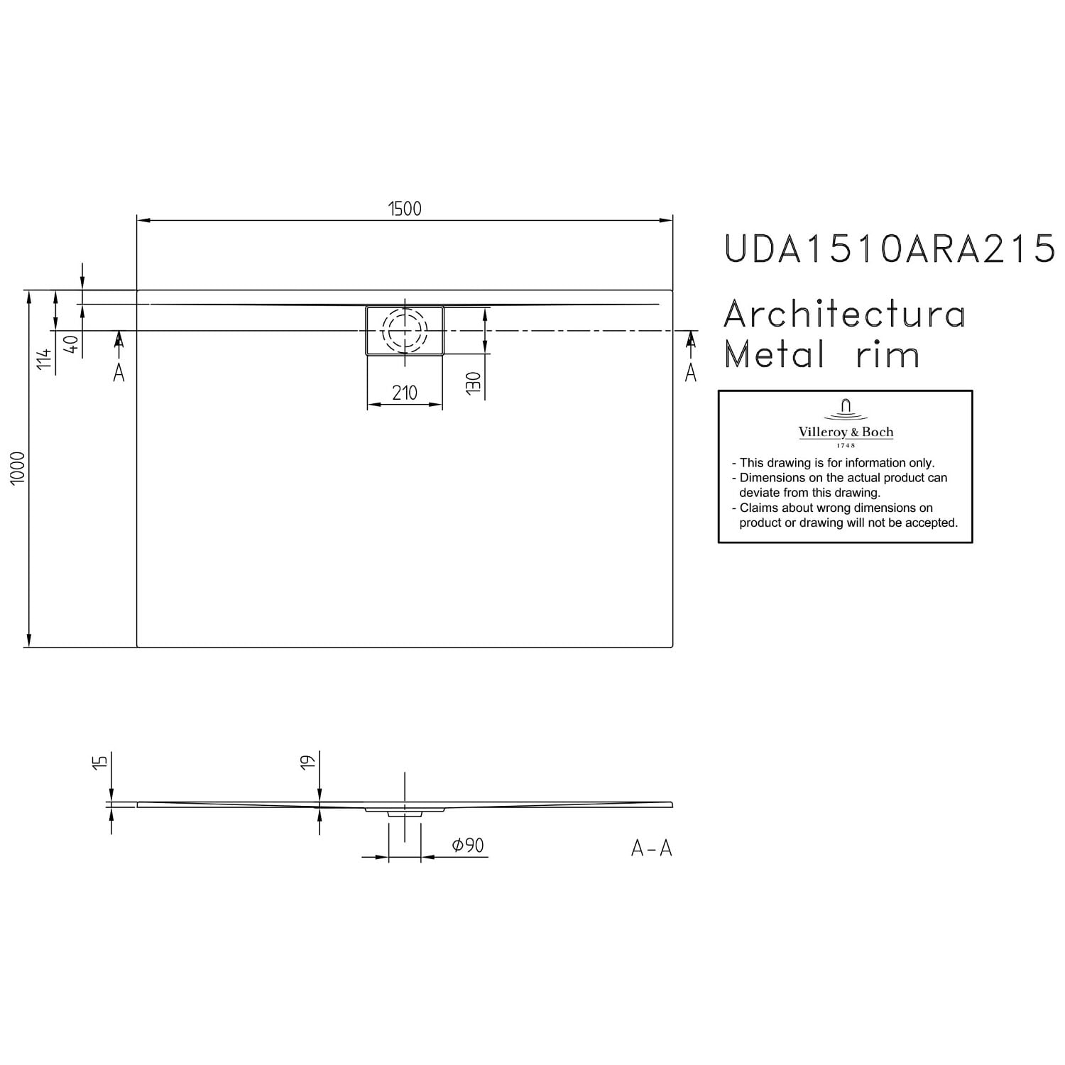 Villeroy & Boch Architectura Metalrim Duschwanne 150 x 100 x 1,5 cm