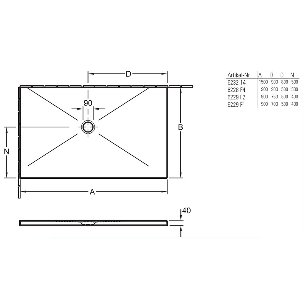 Die Einbauhöhe der Duschwanne kann bei Verwendung der Ablaufgarnitur Art.922600xx um 3 cm reduziert werden.