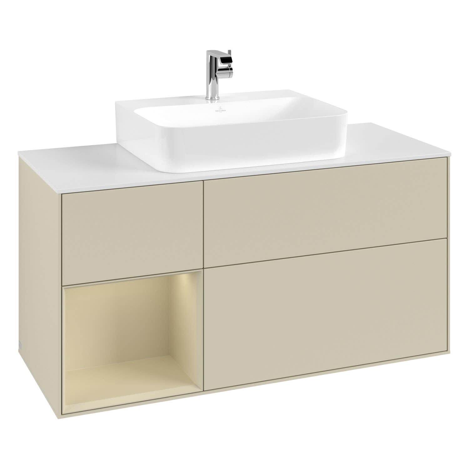 Villeroy & Boch Finion Waschtischunterschrank 120 cm mit Regalelement links, Abdeckplatte