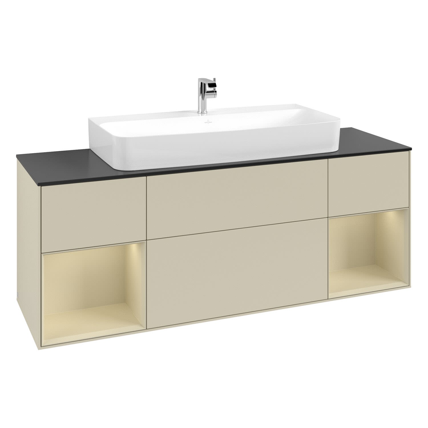 Villeroy & Boch Finion Waschtischunterschrank 160 cm mit 2 Regalelementen, Abdeckplatte, Wandbeleuchtung