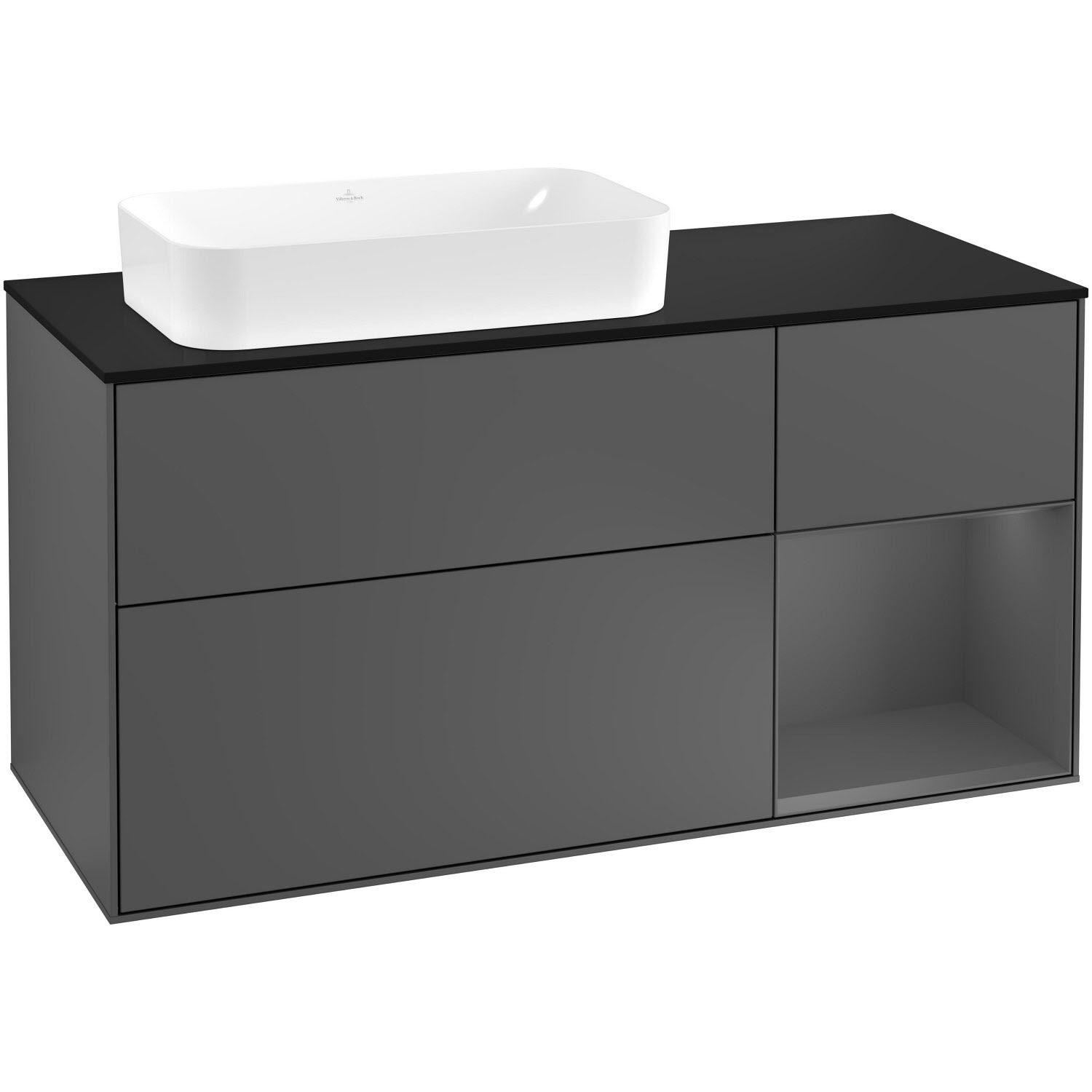 Villeroy & Boch Finion Waschtischunterschrank 120 cm mit Regalelement rechts, Abdeckplatte