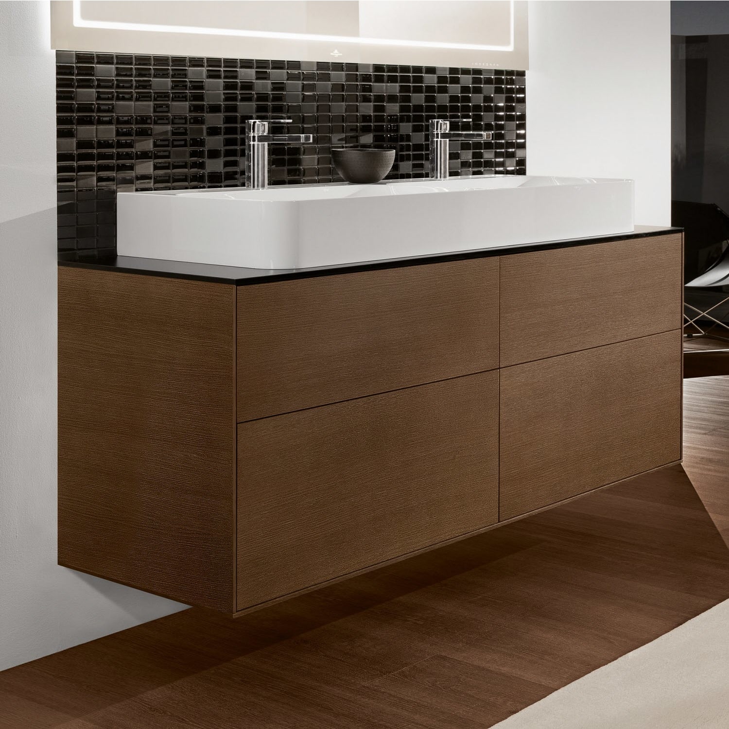 Villeroy & Boch Finion Waschtischunterschrank 160 cm mit Abdeckplatte und LED Wandbeleuchtung