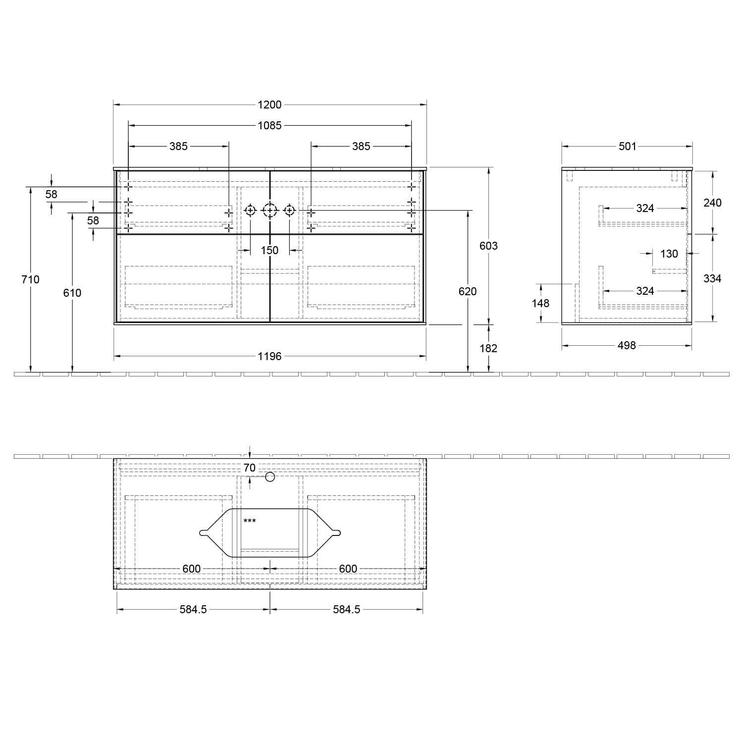 Villeroy & Boch Finion Waschtischunterschrank 120 cm mit Abdeckplatte