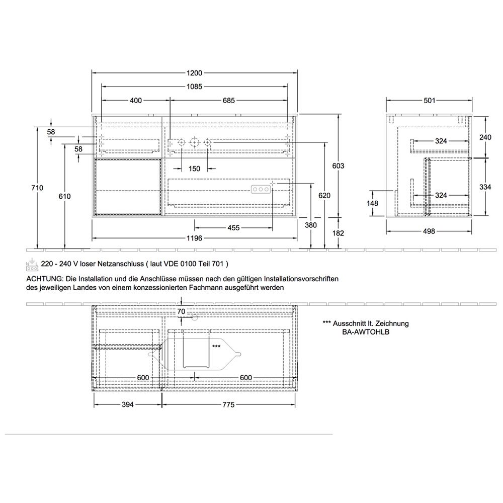 Villeroy & Boch Finion Waschtischunterschrank 120 cm mit Regalelement links, Abdeckplatte
