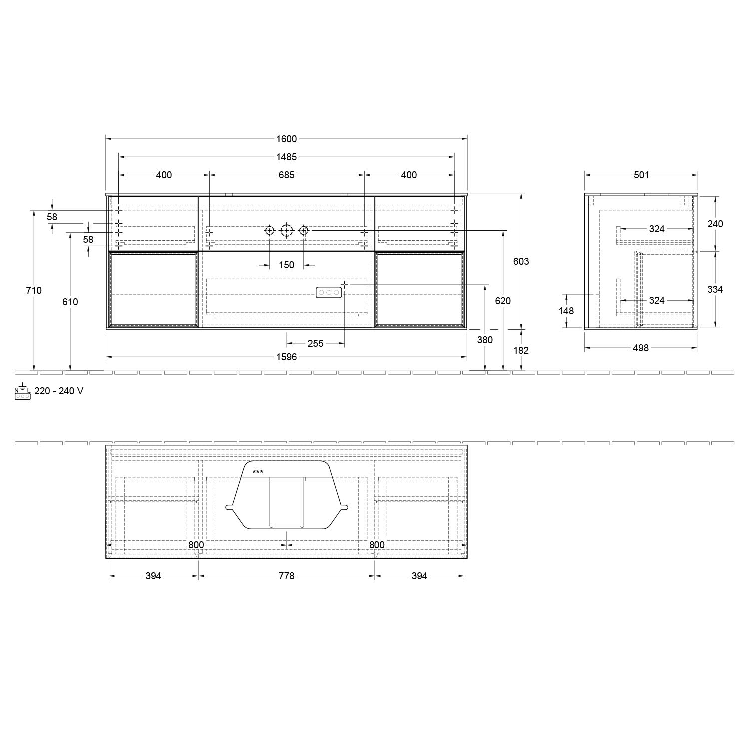 Definierte Waschbecken bitte separat bestellen (ein Beispiel finden Sie im Zubehör).
